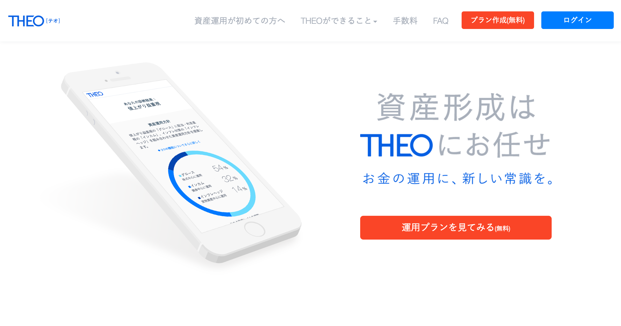 2016年2月に一般向けにも公開されたTHEOは、独自アルゴリズムに基づいたロボアドバイザーが資産を自動的に運用してくれる、個人顧客を対象にした資産運用サービス。年齢や投資経験、リスクに対する考え方など、9つの質問に回答することで、世界の約6000のETFの中から約40種類のETFを組み合わせ、ユーザーの嗜好性に応じたポートフォリオが作成される。PCのほかスマホだけでも手続きが完結し、最小10万円、運用手数料1%(年率)でグローバル資産運用が始められる。