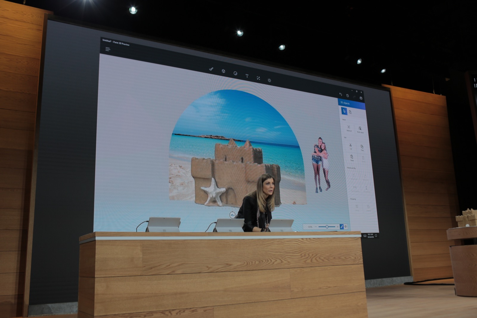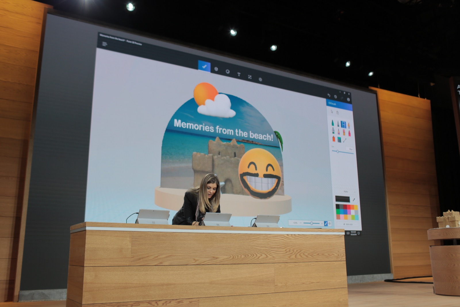 イベントではMicrosoftでGMを務めるMegan Saundersが登壇してアプリの使い方を実演した。Microsoft Surface ペンでのお絵描きツールの使い方、プリセット素材や2D画像の取り込み方を含めオリジナル作品の作り方などを見せた。また、Saundersは作品をFacebookにエクスポートする様子を見せ、既存のソーシャルネットワークでも簡単にシェアできることを示した。