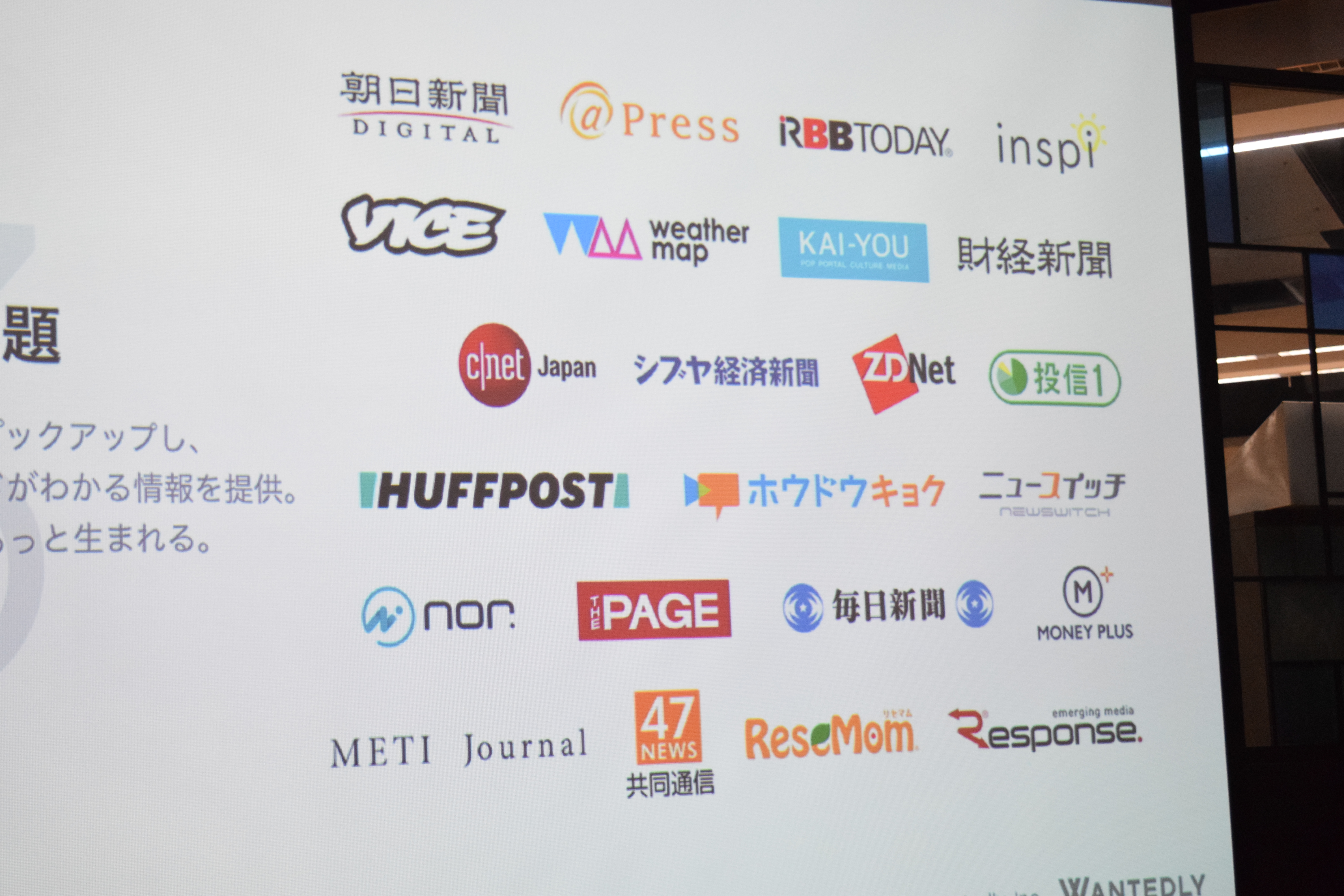 ウォンテッドリーはこの新機能をリリースするにあたり、毎日新聞、朝日新聞デジタル、ハフポスト日本版、CNET Japanなど20媒体と提携。これらのメディアが公開したニュースを人工知能がピックアップして配信する。ただ、逆瀬川光人氏は「著作権を侵害しないかたちで、提携先以外の媒体からニュースを収集する場合もある」としている。