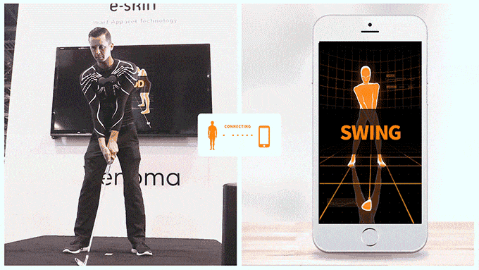 また、e-skinは屋外を移動しながらでも動きをトラックできるのも特徴だ。Xenomaではe-skinを使ったアプリとして、ゴルフ上を回っているときでも、ゴルフのスイングを計測し、正しいウイングができているか確認できる「SWING」アプリを開発している。