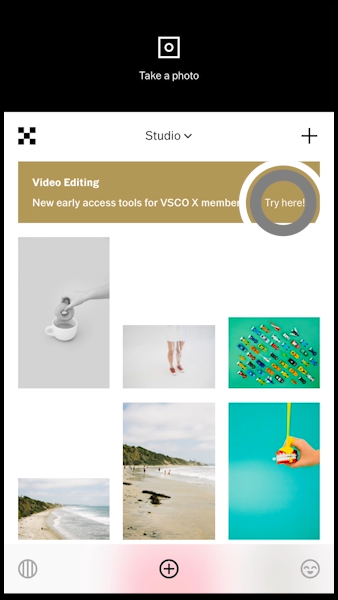 iOSのVSCO Xメンバーは、動画編集ツールに関する情報が記載されているStudio内のバナーをタップすれば、新しいツールを使うことができる。