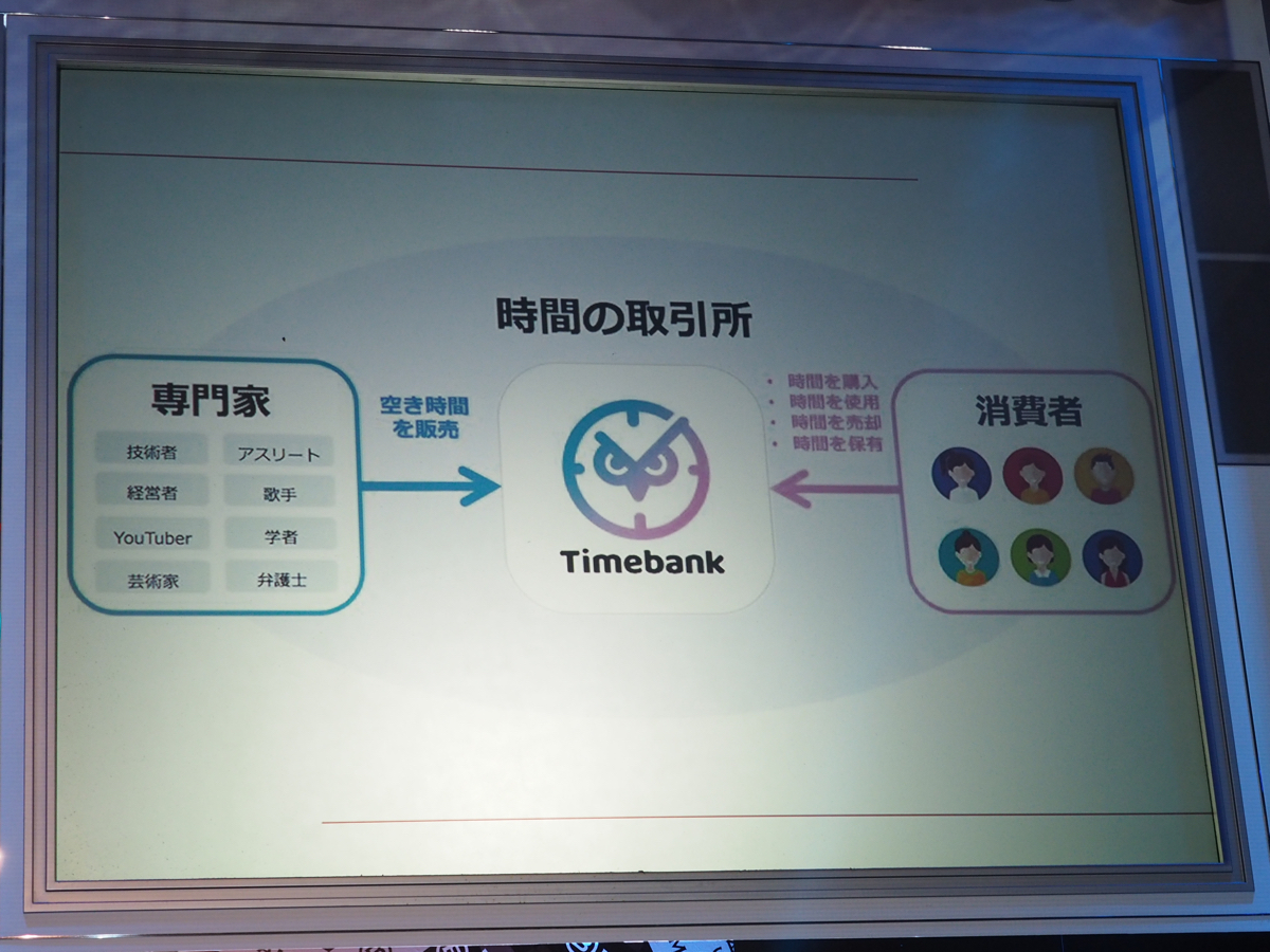 メタップスが今秋提供予定のサービスは「Timebank」。これはスペシャリストの「時間」を時価で売買するというサービスだ。メタップスの佐藤氏はサービス提供の経緯について、「『空間』を売買することは『不動産』として以前からあるが、『時間』を売買できないのが不思議だった。時間こそ時価でやり取りすべきものではないか」と語る。