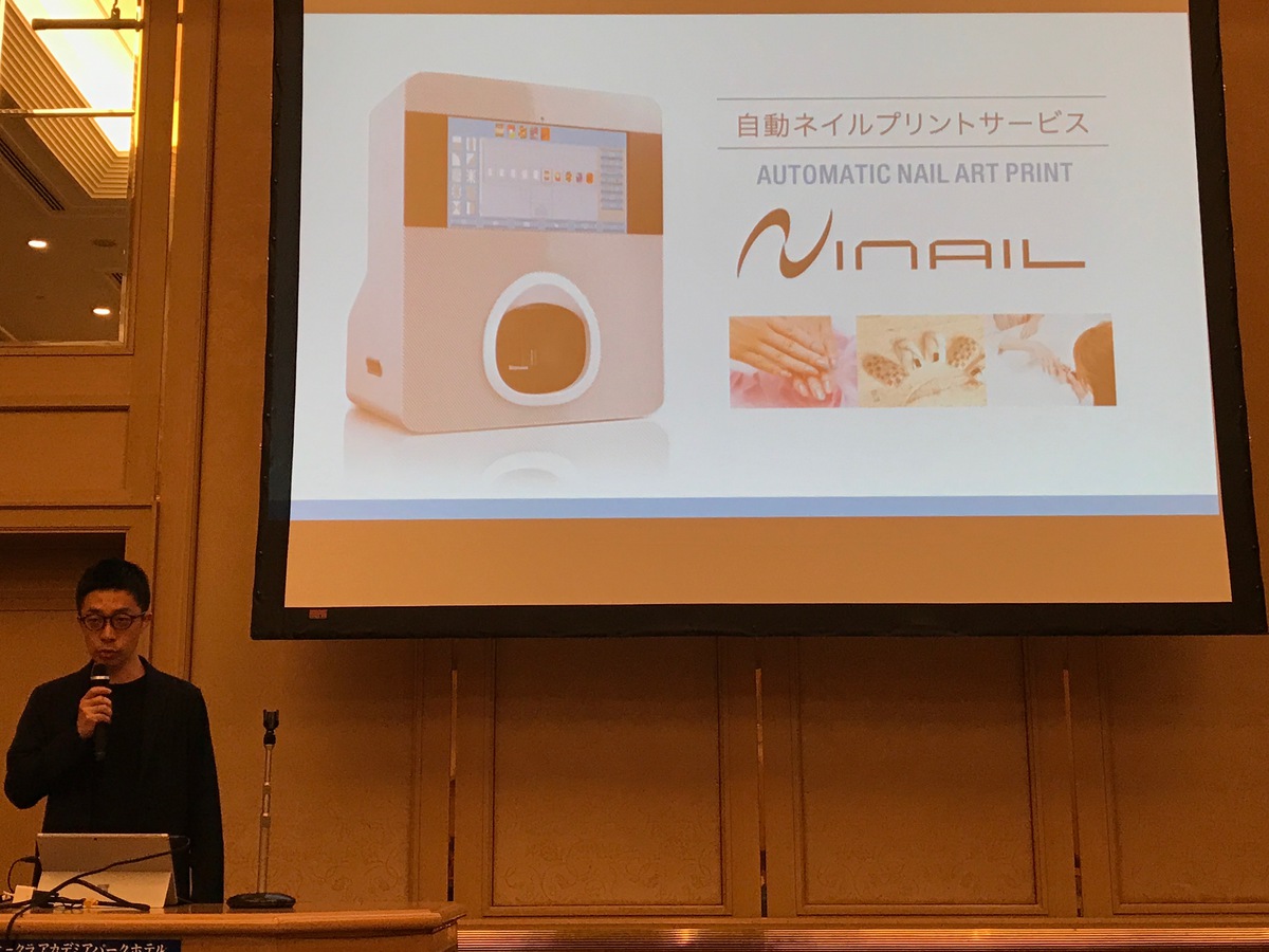 上海でネイルサロン、ヘアサロンを経営していた経験もある木下靖堂氏が創業したBITが提供する「INAIL」は凝ったネイルアートを描くハードウェアを使ったサービス事業だ。大きな血圧計のような箱型のデバイスに手を突っ込むと、ツメの位置や形を3次元的に認識してインクジェットプリンターに近いような方式でアートを描く。INAILによるネイルは人間が15分かかる作業を15秒で終わらせる。フリーハンドで描くよりも再現性が高いビジュアルを実現できる、としている。