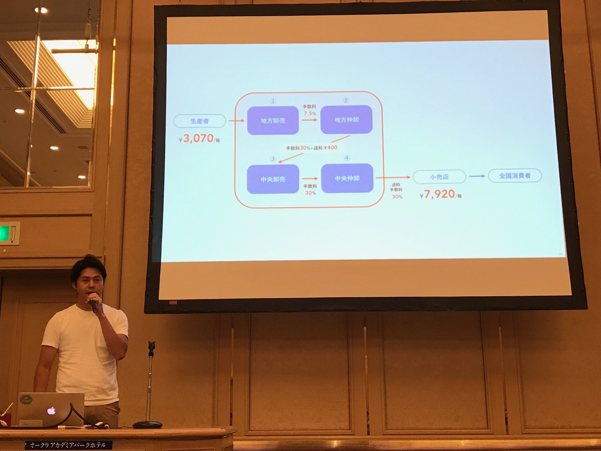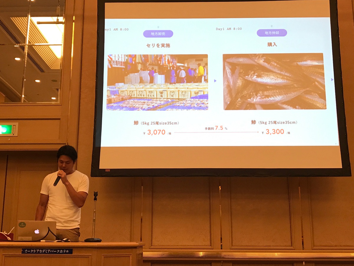 板倉CEOは「産地にとって安すぎる。中央市場にとっては高すぎる」と問題を指摘。単価3070円で出荷された魚が、小売では7920円となって売られているのが現状という。日本でも有数の漁港である境港を抱える鳥取県出身らしく、板倉CEOは「生産者が不利益を被る構造になっている。これは流通の問題」という。「どこにでも売れる、どこからでも買える」という水産流通の実現を目指していて、uuuoでは15%の手数料を引いても安く仕入れることができるようになるという。