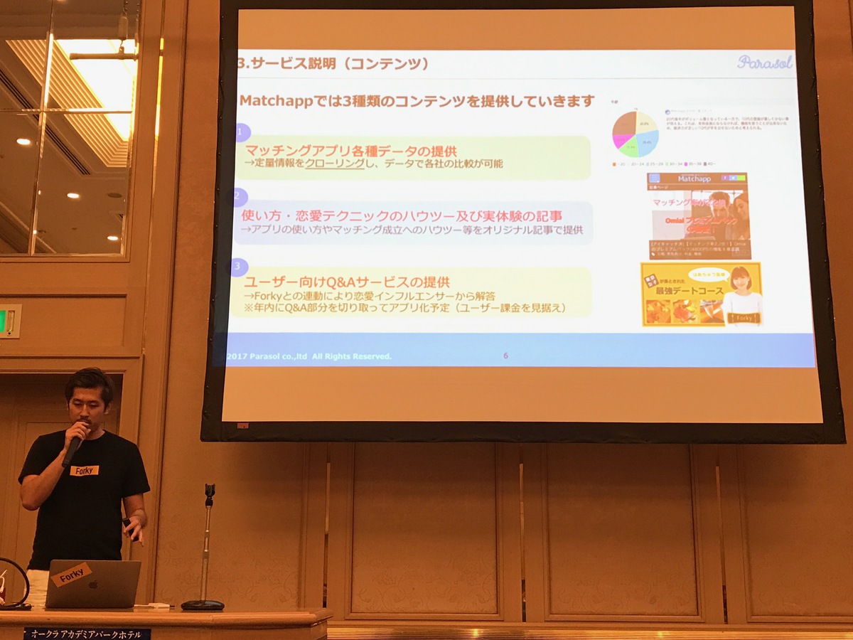 「傘(からかさ)」という、ちょっと変わった自分の名字からパラソルという社名のスタートアップを2017年に創業した傘勇一郎氏が作るのは、男女のマッチングアプリと恋愛攻略情報を提供するサイト「Matchapp」だ。これは「恋愛板のGameWith」のようなもので、近年登録者数が増えているマッチングアプリについて、第三者の立場から使い方や、攻略法といった情報提供を利用者に対して行う。