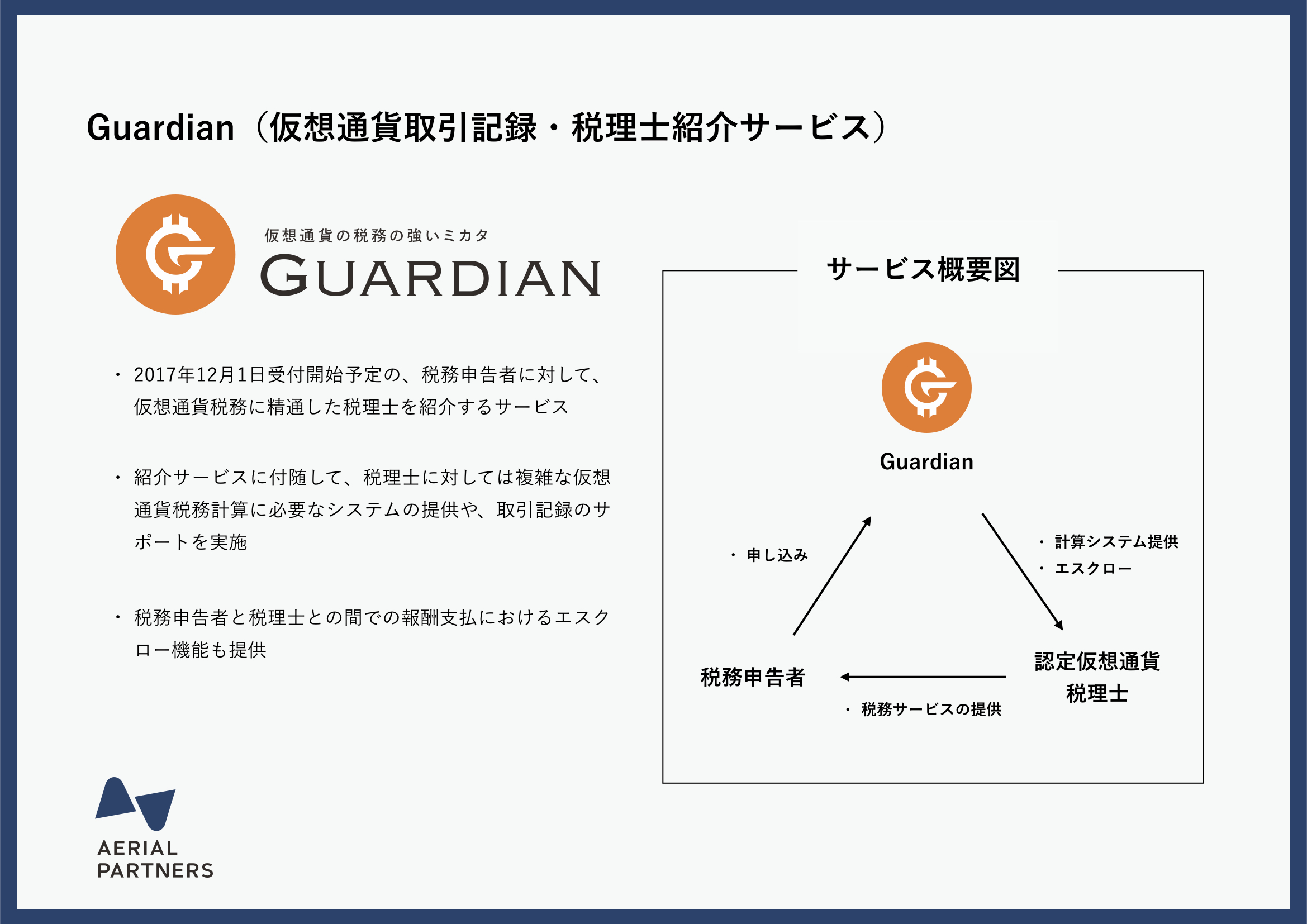 そんな仮想通貨の税務問題に取り組むのが、12月1日にリリース(一次申し込み開始)予定の税理士紹介・記帳代行サービス「Guardian」だ。