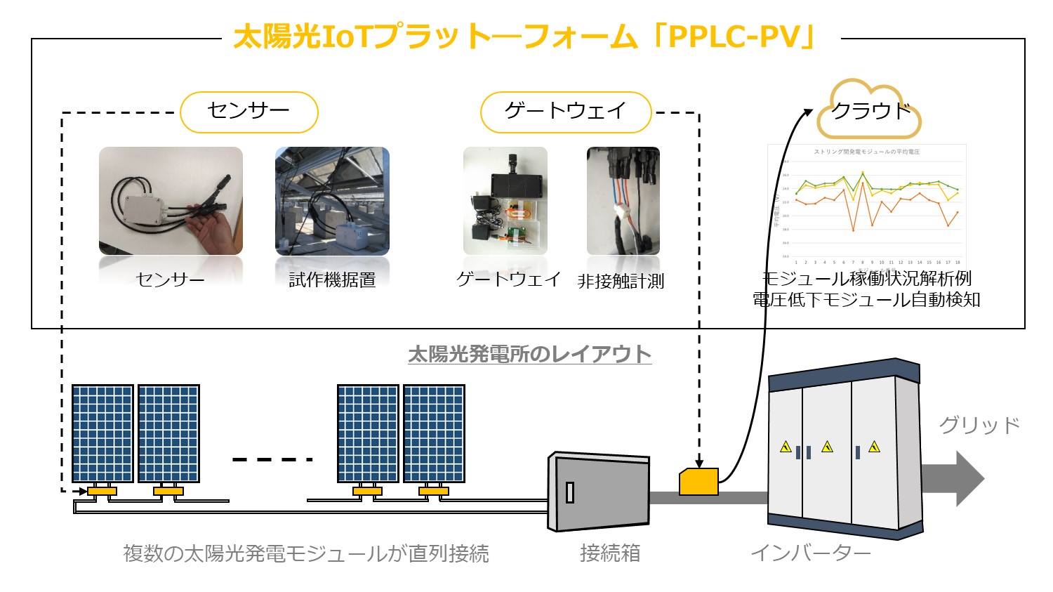 PPLC-PVでは各モジュールに外付できるセンサーを設置し、モジュールの稼働データを収集。そのデータを解析して異常点を自動で検知する。それを可能にしているのが、ノイズ耐性に強い独自の電力線通信技術だ。