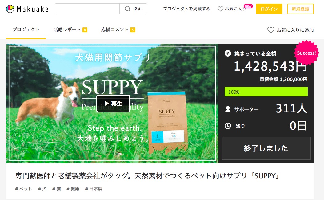 すでにペット向けのサプリメント「SUPPY」の開発に着手していて、2017年11月にはクラウドファンディングを通じて約140万円を集めた。2018年1月から国内と東南アジアで一般販売を開始する予定で、今後はサプリに加えてフードやおもちゃなどの開発も検討していくという。