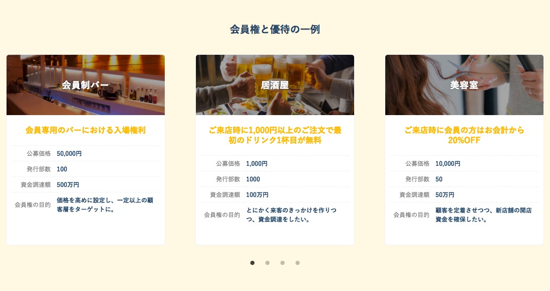 同社で現在開発している新サービスが冒頭でも紹介したSPOTSALE。飲食店や美容室などの店舗が会員権を発行、販売することで資金を調達できる「お店の会員権の取引所」だ。