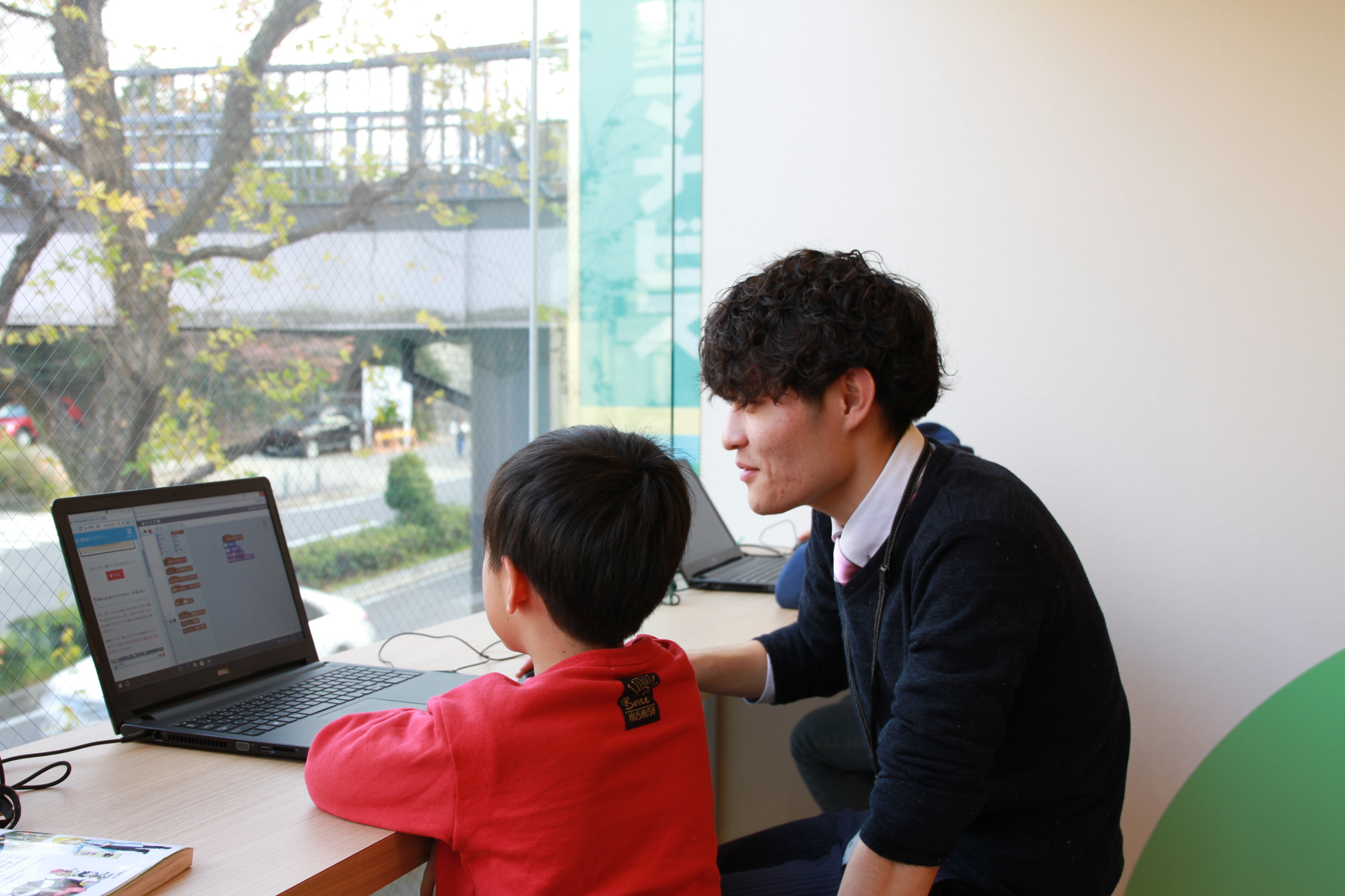子どもたちは教室に足を運び、基本的には動画を見ながら自分で手を動かしてプログラミングを学ぶ。先生たちの役割は必要に応じてそれをサポートすること。そのためプログラミングに精通していなくても、スクールを開講することができる。
