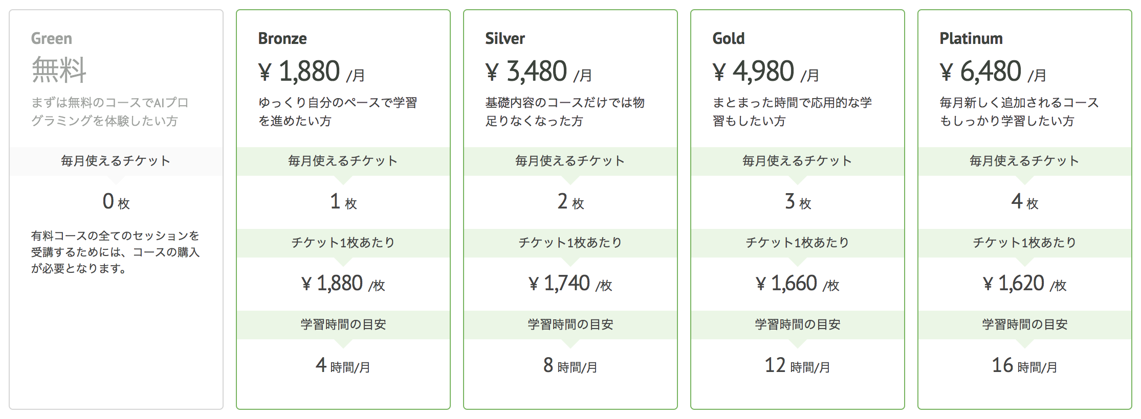 これまでは無料でサービスを提供していたが、本日から有料会員プランをスタート。Python入門、機械学習入門、ディープラーニング基礎の3コースは引き続き無料で受講でき、それ以外のコースは有料となる。