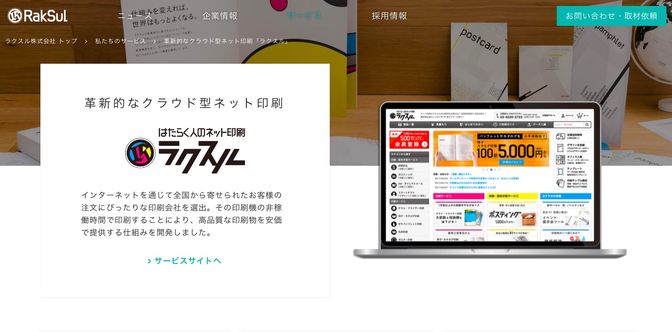 ラクスルは2009年9月の設立。2010年4月に印刷通販の価格比較サービスサイト「印刷比較.com」をリリースし、同年10月にラクスルへと名称を変更した。その後複数の資金調達も実施しながらサービスを拡張。2013年3月から現在提供する印刷のシェアリングプラットフォームとしてサービス提供を始めたほか、2015年3月には広告プラットフォームとして集客支援サービスもリリースしている。