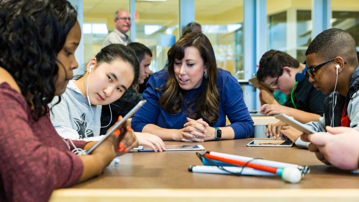 ニュースリリースによると、レッスンはAppleのアクセシビリティー機能を利用している生徒向けに拡張され、教師の支援の必要度に応じて個別にカスタマイズできる。ボイスオーバーが重要な役割を担い、視覚に障害のある生徒のために画面上の指示を順次読み上げる。聴覚に障害のある生徒のために、新しいSwiftカリキュラムは字幕やLEDフラッシュによるアラート、iPhone互換の補聴器などを活用する