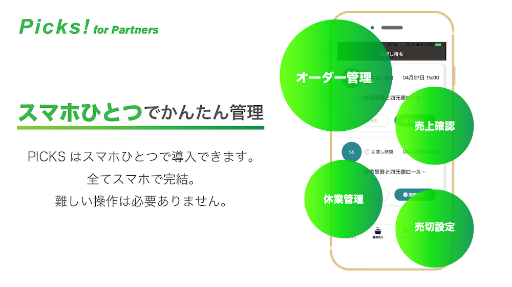 約1年間サービスを提供する中で得た知見を基に、大きな改善を経てPICKSとして再度リリース。大手のチェーン店はもちろん、個人経営の飲食店でも手軽にモバイルオーダー&ペイに対応できるアプリを目指すという。