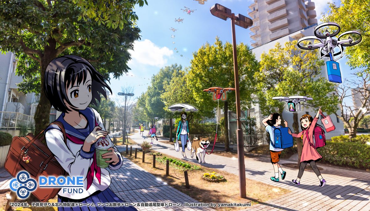 最後に今回Drone Fundが発表したドローン前提社会やエアモビリティ社会の近未来予想図に関するイラストをいくつか紹介したい。千葉氏によると実現される年度についても実現可能性を踏まえて作成しているとのこと。今後ドローンがどのように身の回りで普及していくのか、これを見ながら想像してみるのもよさそうだ。