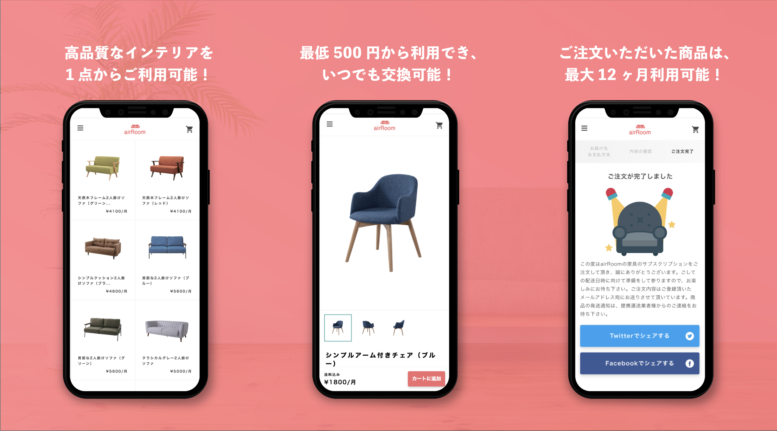 最低月額500円で約600種類の家具をレンタル、「airRoom」が数千万円の資金調達