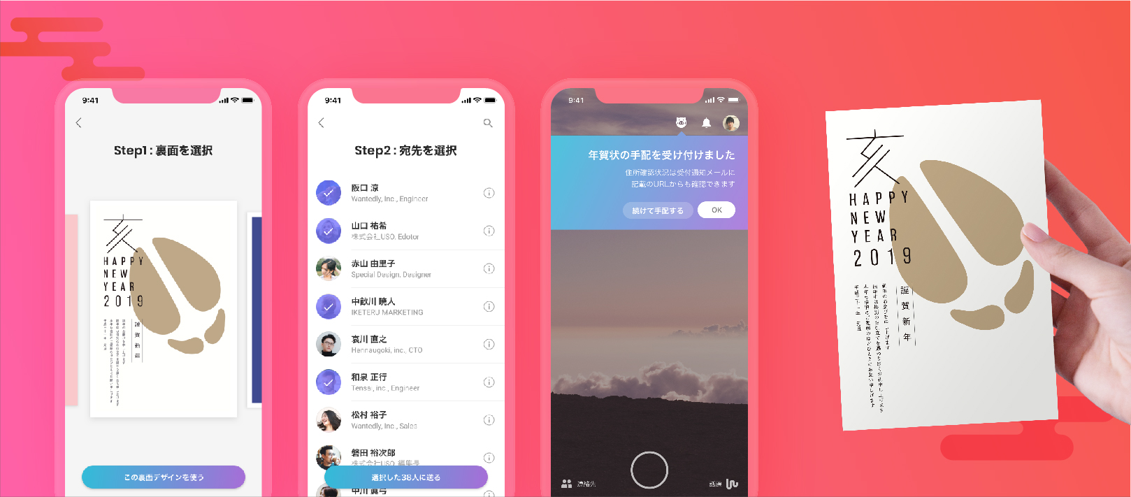 ビジネスSNSを手がけるウォンテッドリーの名刺管理アプリ「Wantedly People」に新機能が登場した。読み込んだ名刺情報から紙の年賀状を無料で送れるサービス「Wantedly 年賀状」だ。同社はこのサービスの運営にあたり日本郵便と連携する。