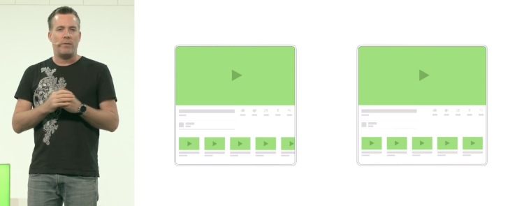 Android OSに新たに加わる機能としては、画面の状態(ひらいている、たたまれている)を告げるフラグだ。その効果は、これまでのスマートフォンで、ポートレートモードとランドスケープモードでアプリケーションの表示が変わるときのような、効果になるだろう。