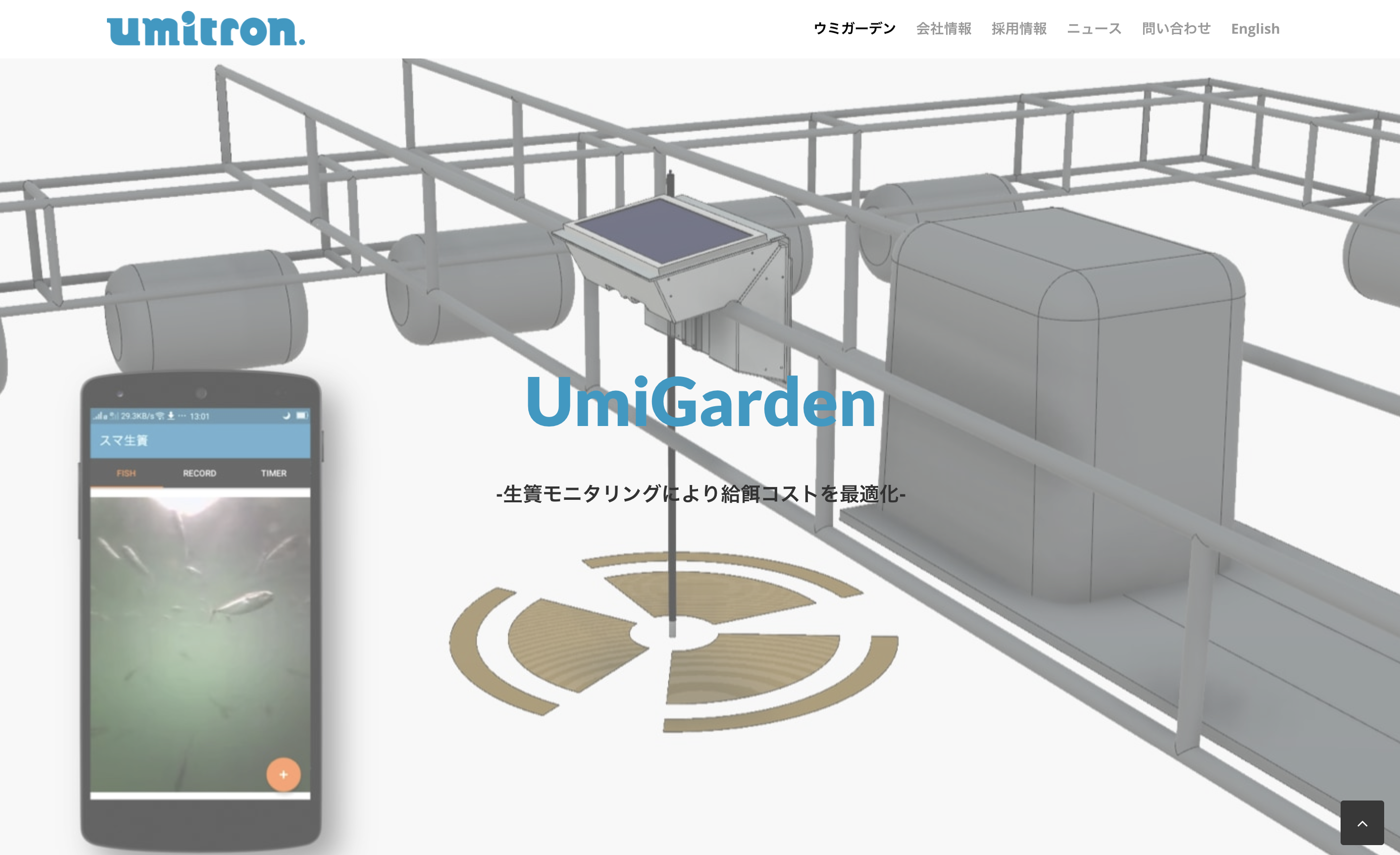同社は、IoT、衛星リモートセンシング、AIをはじめとした技術を利用して「UmiGarden」と呼ばれるシステムを提供しており、これを導入することでスマホでの魚の観察や餌やりが可能になる。これらの作業はすべてログに記録され、最適な給餌を学習していく仕組みだ。