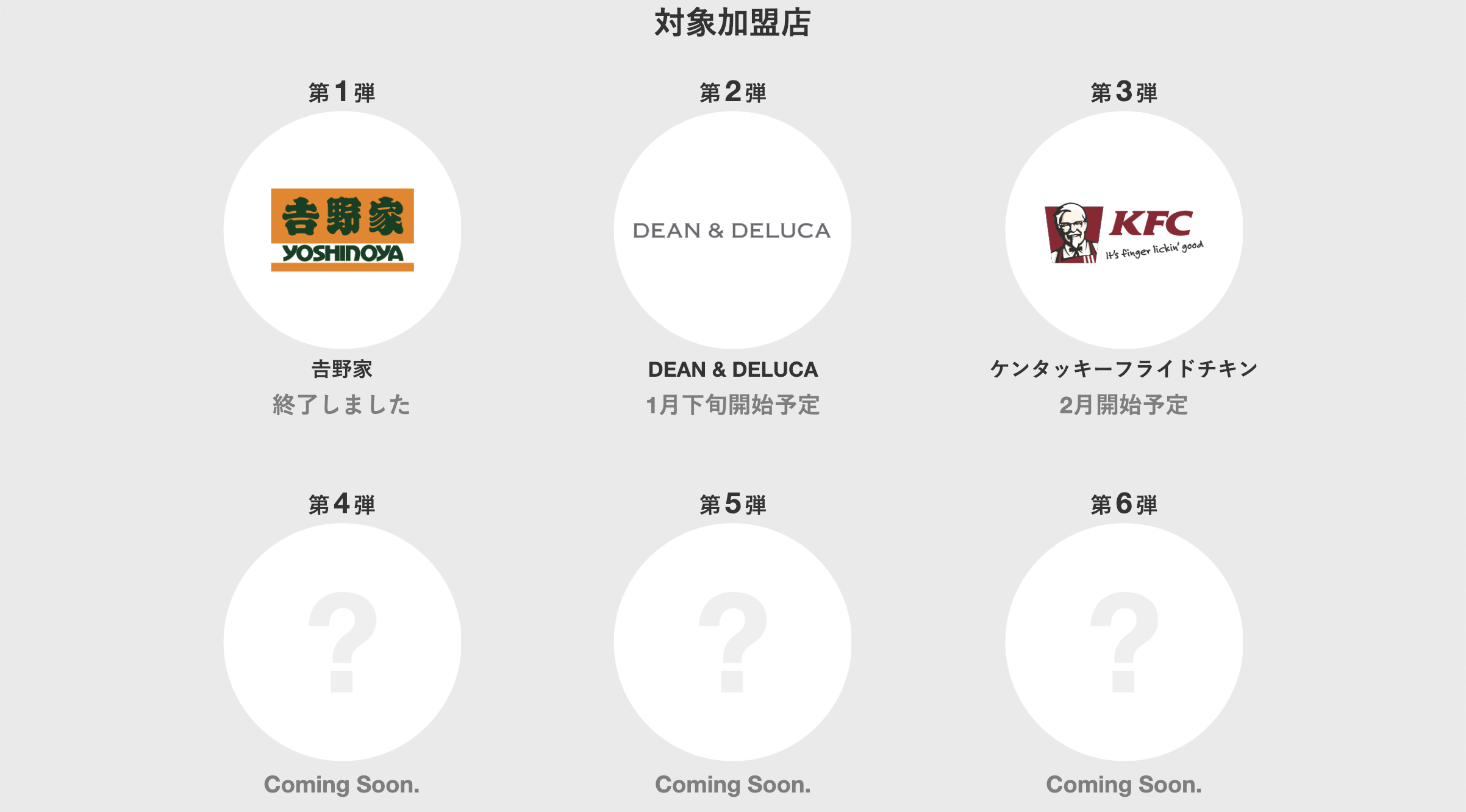 今後はケンタッキーフライドチキンを対象にした第三弾が2月に予定されており、ウェブサイト上では第六弾まで予告されている。