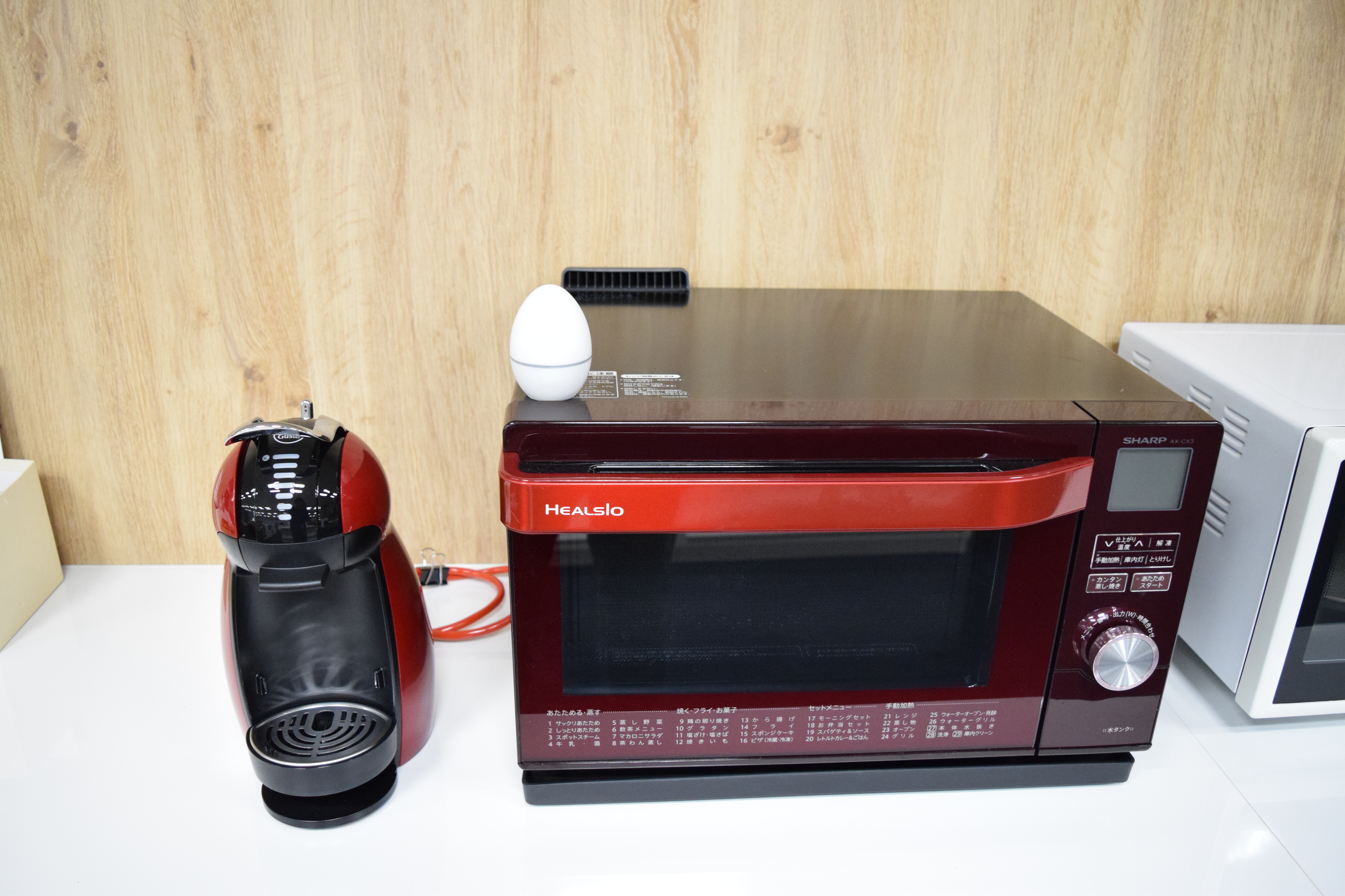 たぶん実際にはこんなところに置くことはないが、ヘルシオの上にもちょこんと乗せてみた。