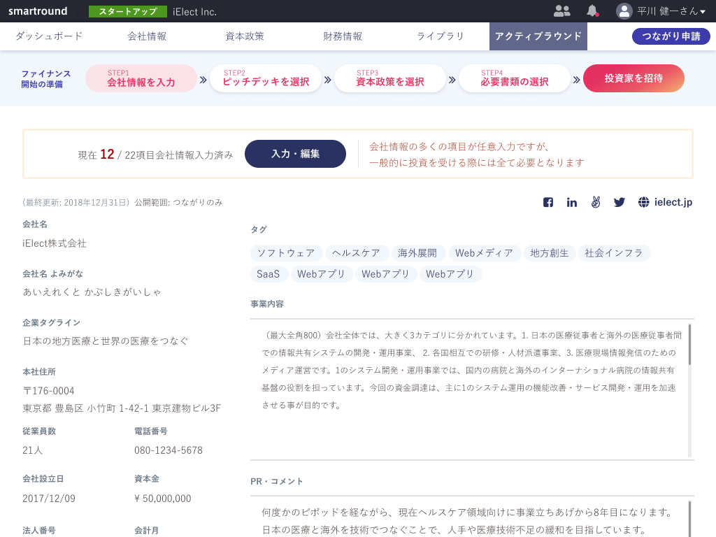 smartroundはスタートアップとその投資家向けに特化したファイナンス管理基盤だ。スタートアップ向けには、ファイナンスに詳しくない起業家のために、ガイドに沿って必要事項を入力するだけで、適切な資金調達ラウンドを準備し、増資をシミュレーション・実行できる機能を用意。増資実行後も株主への情報共有やコミュニケーションをサポートする。
