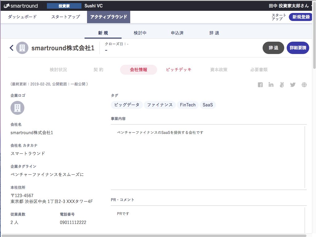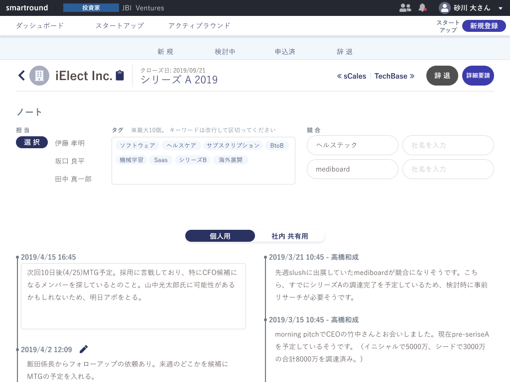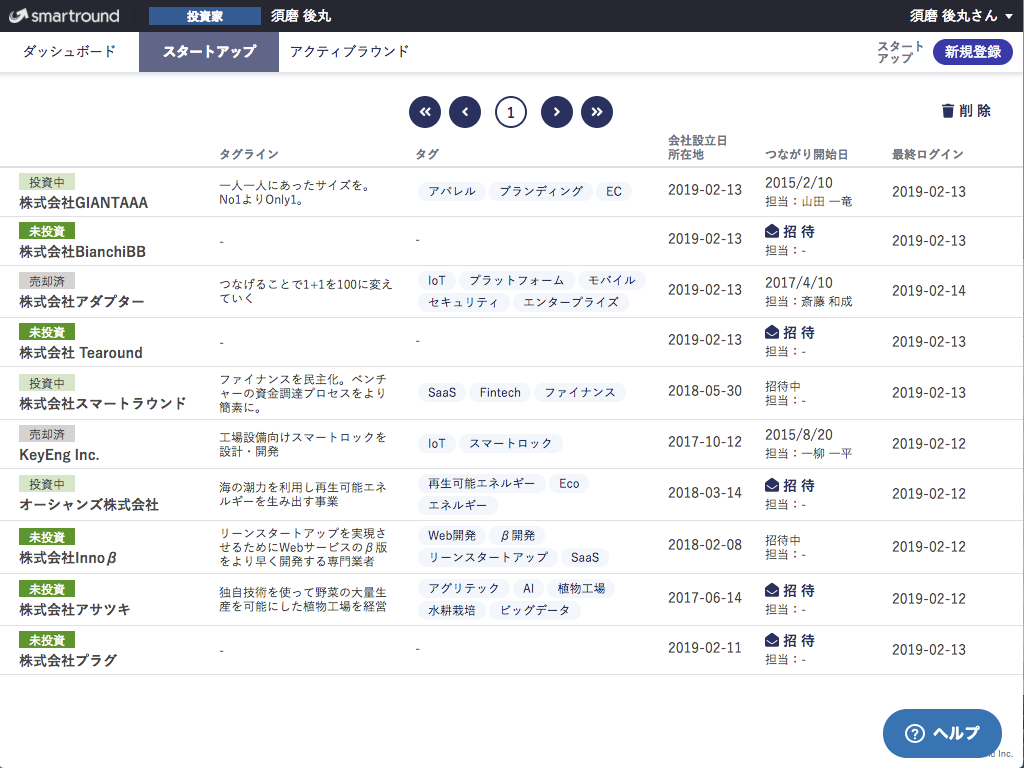 投資家には、投資案件・投資先企業の管理を、抜け漏れの起きやすいスプレッドシートに代えてクラウド上で行えるようにした。スタートアップが自社用の画面で入力したマスターデータを、権限を付与される形で投資家・株主が共有でき、必要な情報を入力する手間なく集計・管理することができる。