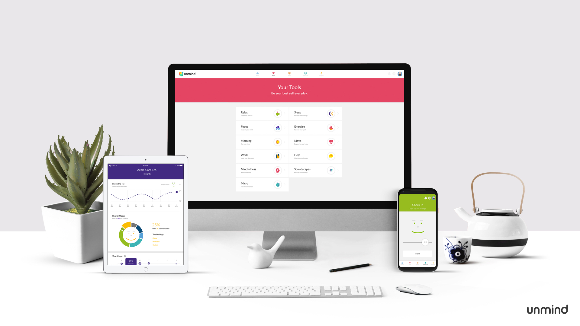 Unmindは現在、Square Enix、John Lewis & Partners、Made.com、William Hill、Yorkshire Building Society、Thomsons Online Benefits 、そしてPentland Brandsなどをクライアントとして抱えている。