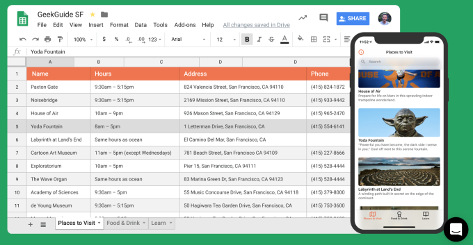 以前から、トレンドはウェブページやモバイルアプリを簡単に作れるサービスに大きな関心が集まり、流れはそちらに向かっていた。Glideは、Googleスプレッドシートを使うことで、顧客が簡単に本格的なモバイルアプリを作れるようにする。ページが簡単に作れるだけでなく、サイトの情報を常に最新に保つ方法も単純化している。