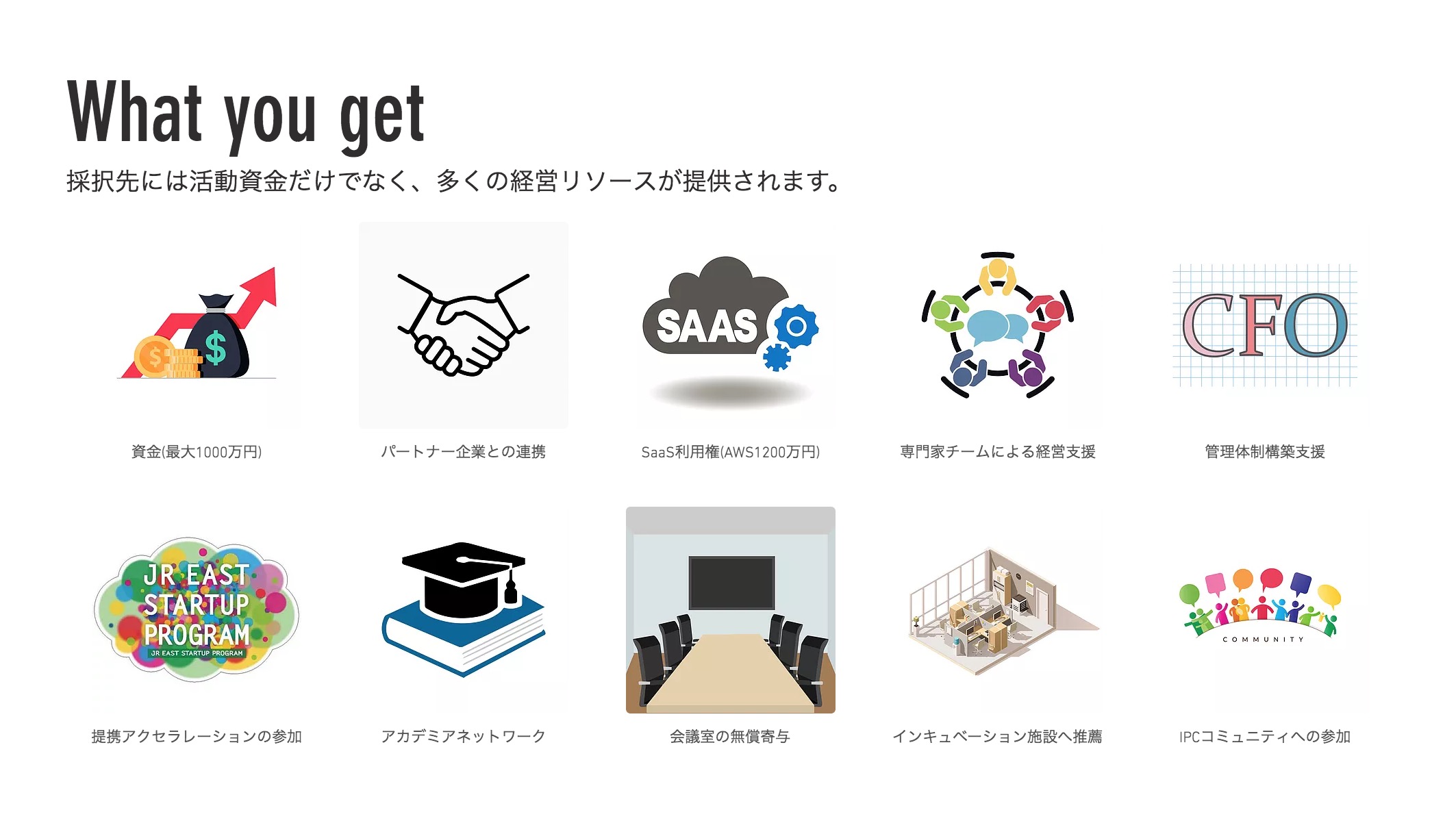 今回発表された東大 IPC 1stRoundは東大IPC起業支援プログラムの支援対象や支援規模を大幅にアップデートしたもの。採択企業には従来通り6ヶ月のハンズオン支援に加え、最大1000万円の活動資金やJR東日本スタートアップなど6社のコーポレート・パートナーとの協業支援、様々な開発リソース、各分野のプロフェッショナルサービスなどが提供される。