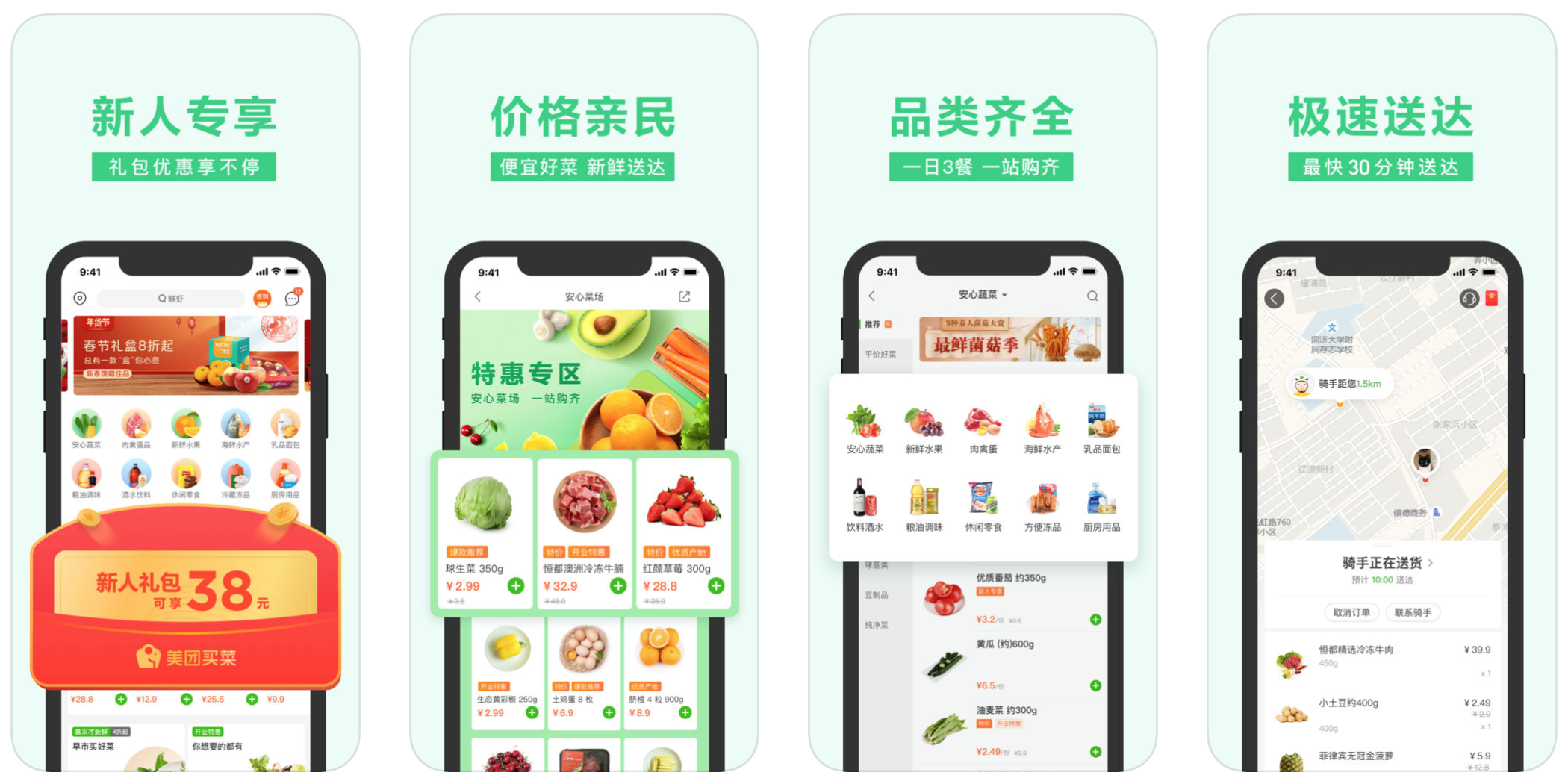 玄関先まで食品を届けるためのMeituanのソリューションは同業他社のものとさほど変わらない。ヨーグルトから豚ロース肉まで1500もの食品の中から好きなものを選んでアプリのショッピングカートに入れ、携帯で決済をする、とMeituanはTechCrunchに説明した。注文を受けるとMeituanはわずか30分以内に配送を開始する。