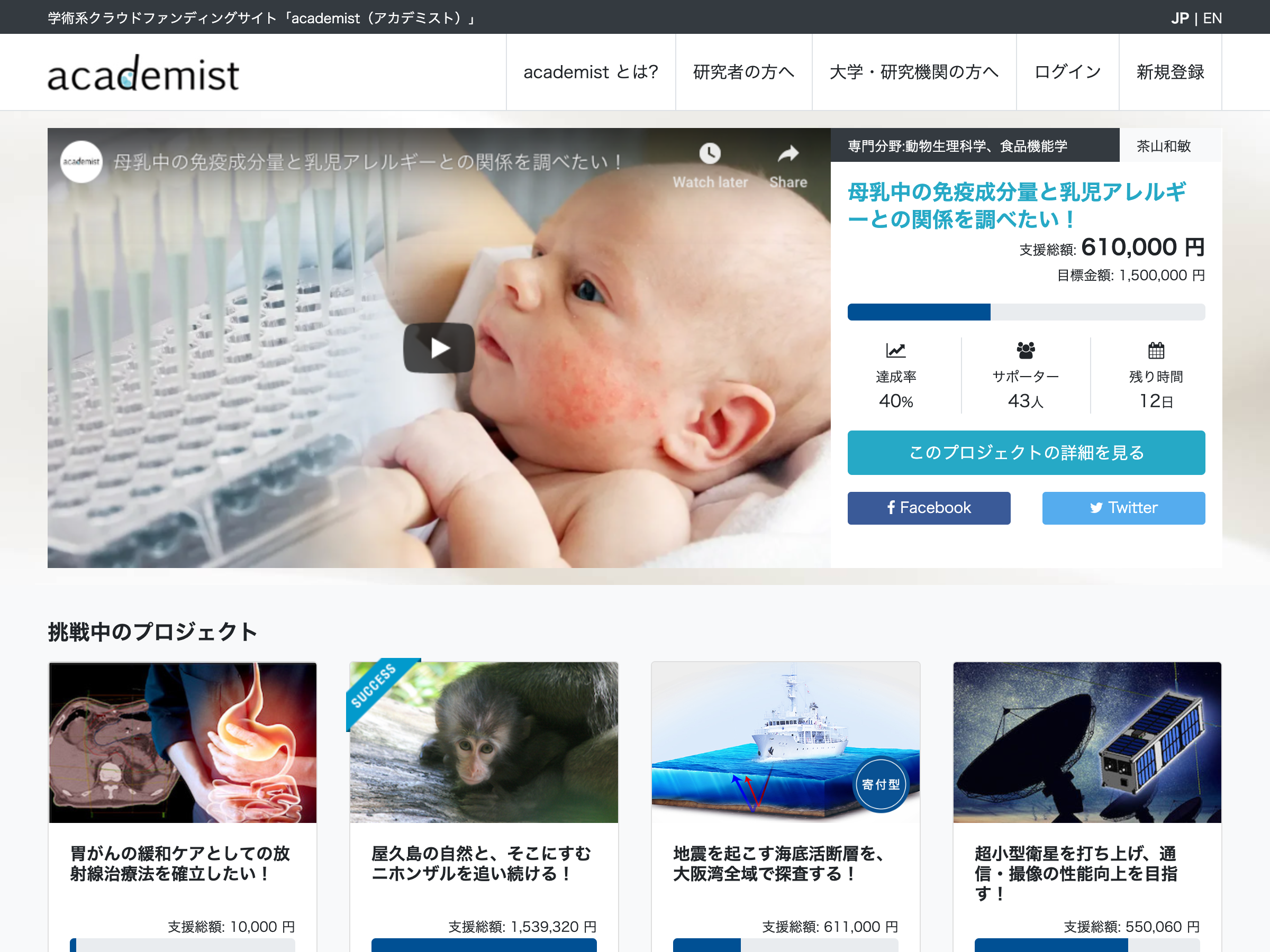 2014年、学術系に特化したクラウドファンディングサービスとして公開されたacademist。これまでに、約100名の研究者がプロジェクトに挑戦し、研究費の獲得に成功した総額は約1億円に上るそうだ。
