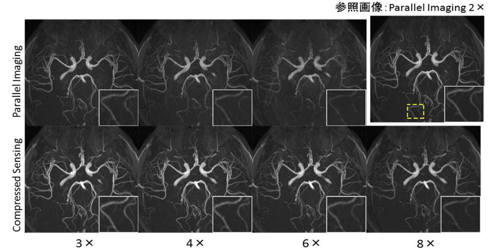 従来法とスパースモデリングによる画像の再構成の結果(出典元:T. Yamamoto, et al. Invest Radiol (2016))
