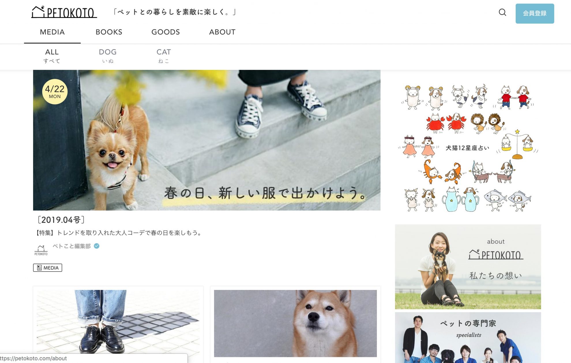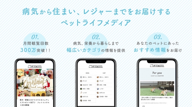 もう一方のペトことは飼い主向けにお出かけやアウトドアといったライフスタイル系の情報から、獣医療のように専門性の高いトピックまで、幅広いコンテンツを提供するペットライフメディア。「信頼性にこだわっていて、獣医師でも“がん専門医”など領域に特化した専門家が執筆段階から関わっている」(大久保氏)のがウリで、直近では月間約160万UU、400万PVほどの規模に成長している。