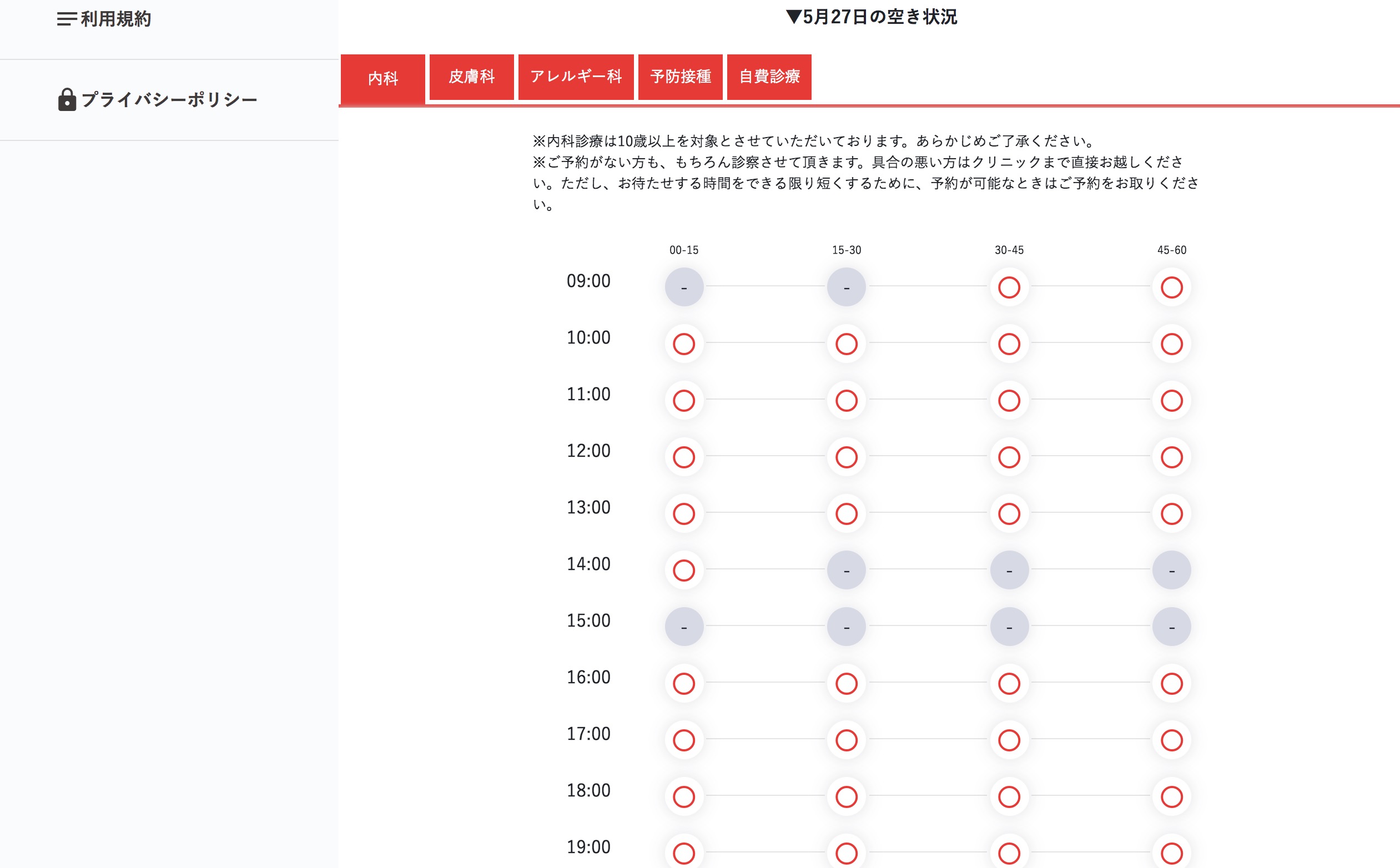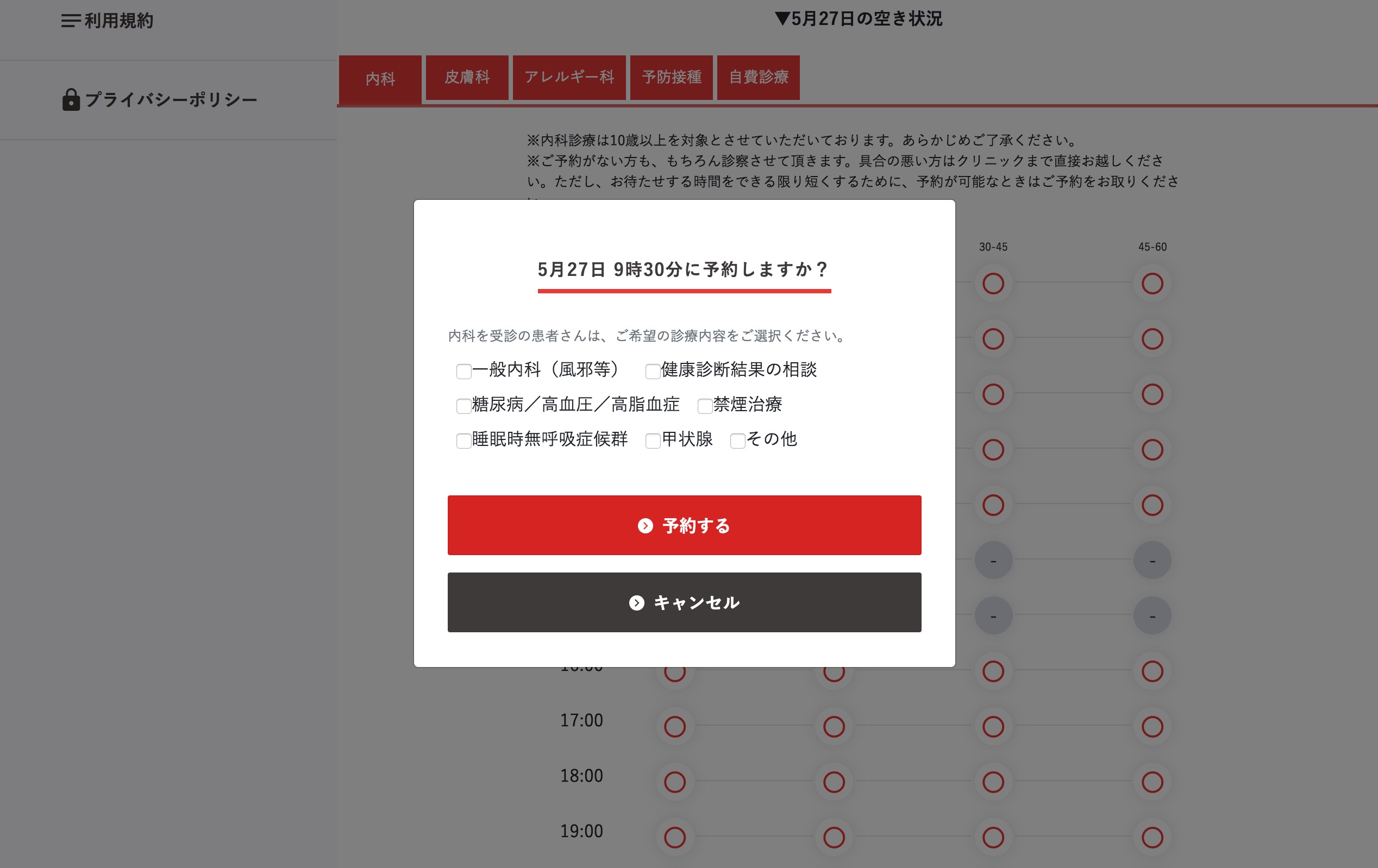 画面を見てもらうとわかるが新幹線などの予約画面にも近い感覚だ。予約時に簡単なオンライン問診も実施することで、当日の診察をよりスムーズにする。