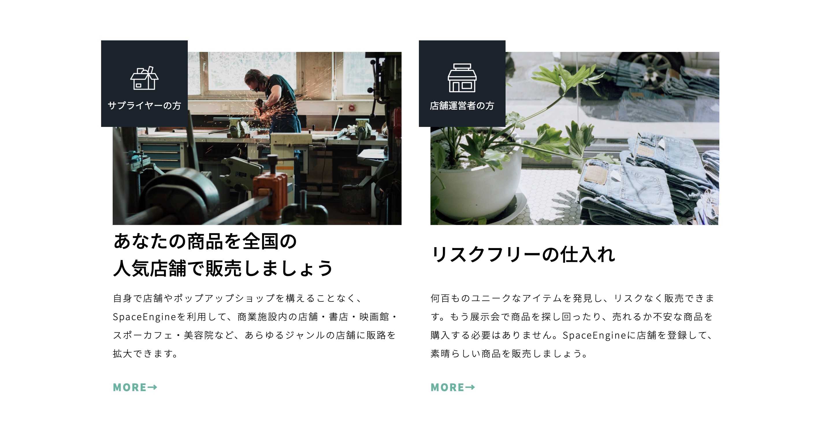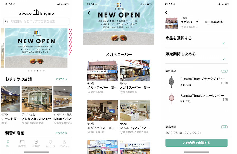 SpaceEngineは商品をオフラインで展開したいブランド(サプライヤー)と、その商品を扱いたい店舗を委託販売形式でマッチングするサービスだ。