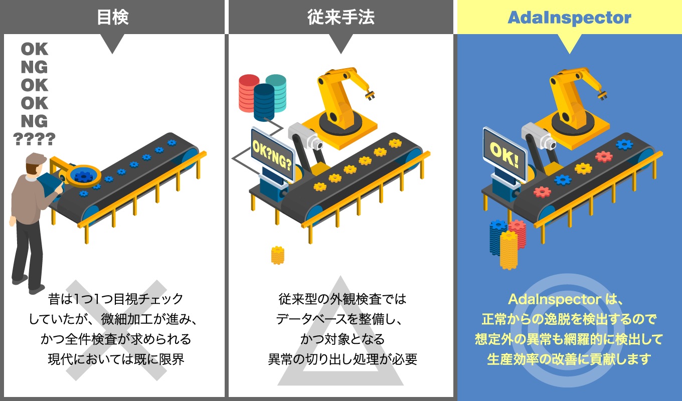特に自動車の部品のように異常が人の安全に直結する可能性のある分野では、1つ1つのチェックを目視で行うとなると現場への負担が大きい。ルールベースのシステムも最初に大量のデータを集める必要があることに加え、モデルチェンジや環境の変化などで検査対象の仕様が変わるたびに最初から設定をし直さなければならなかった。