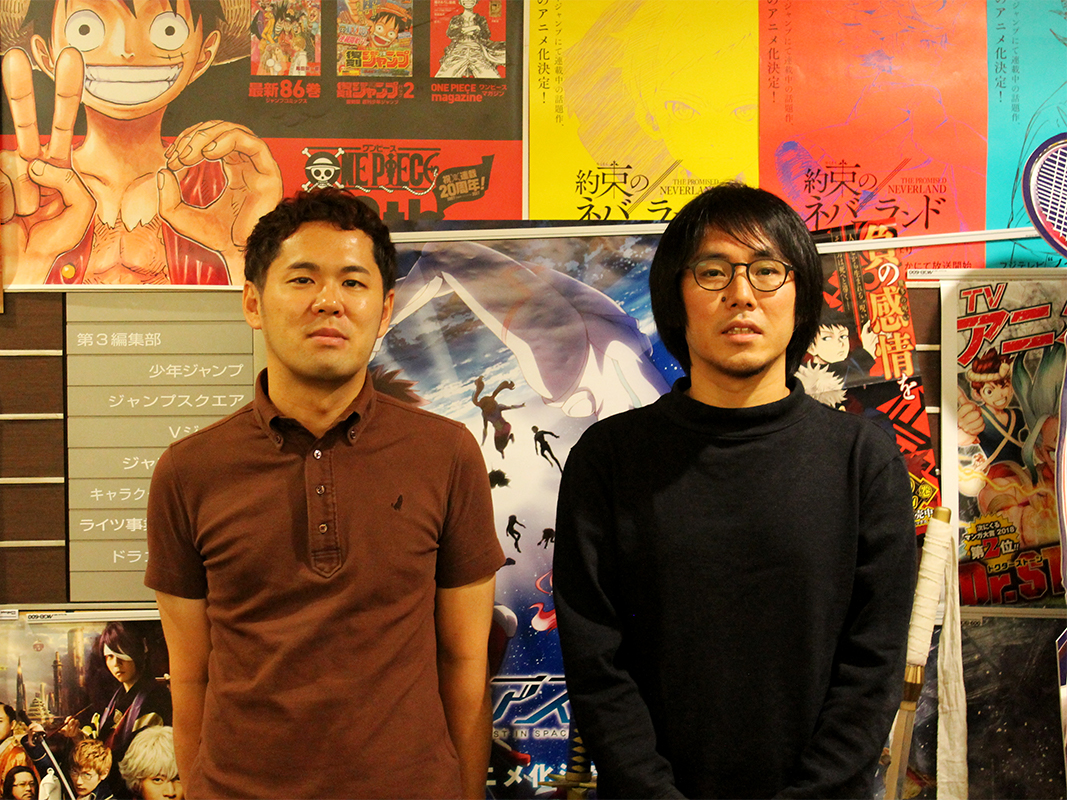 今回取材したのは、集英社 週刊少年ジャンプ編集部の細野修平氏と籾山悠太氏。細野氏はジャンプのWeb・アプリ版として展開されている「少年ジャンプ+」編集長を務め、籾山氏も少年ジャンプ+を担当する。