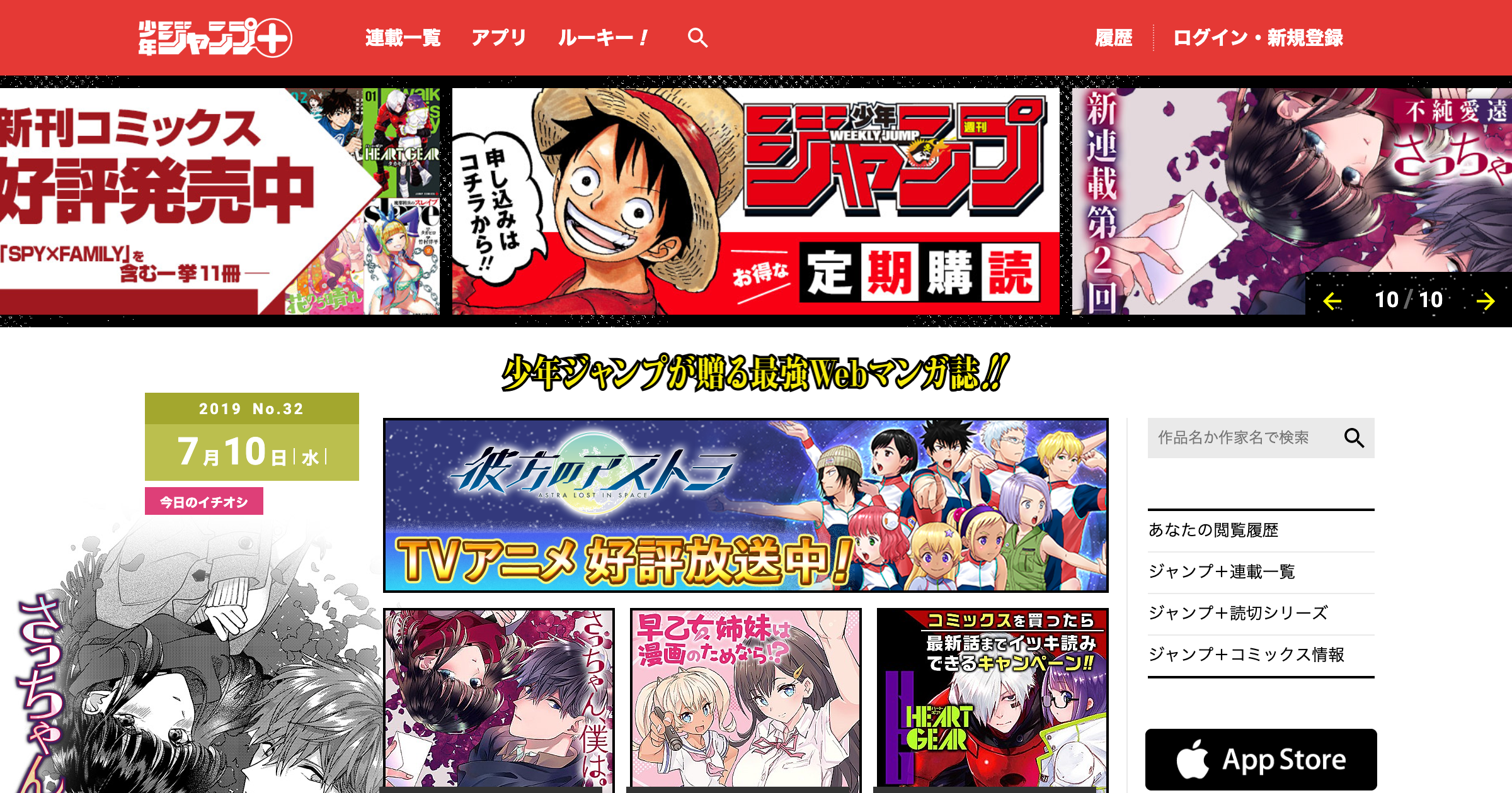 「少年ジャンプ+」Webサイト。iOS/Androidアプリも提供されている