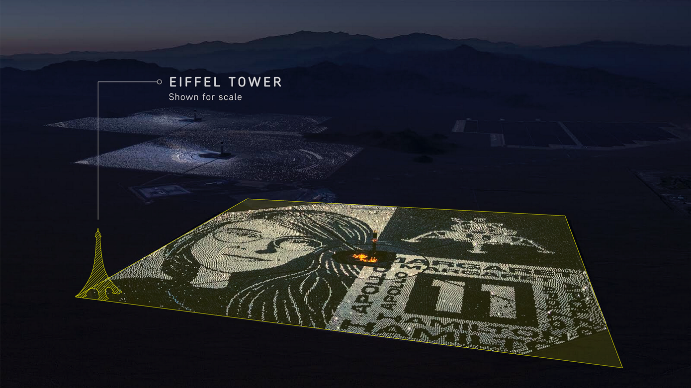 ポートレートは10万7000枚の鏡からなり、3.6平方キロにもおよび、ニューヨークのセントラルパークより広い。エッフェル塔を200個並べることができるという。