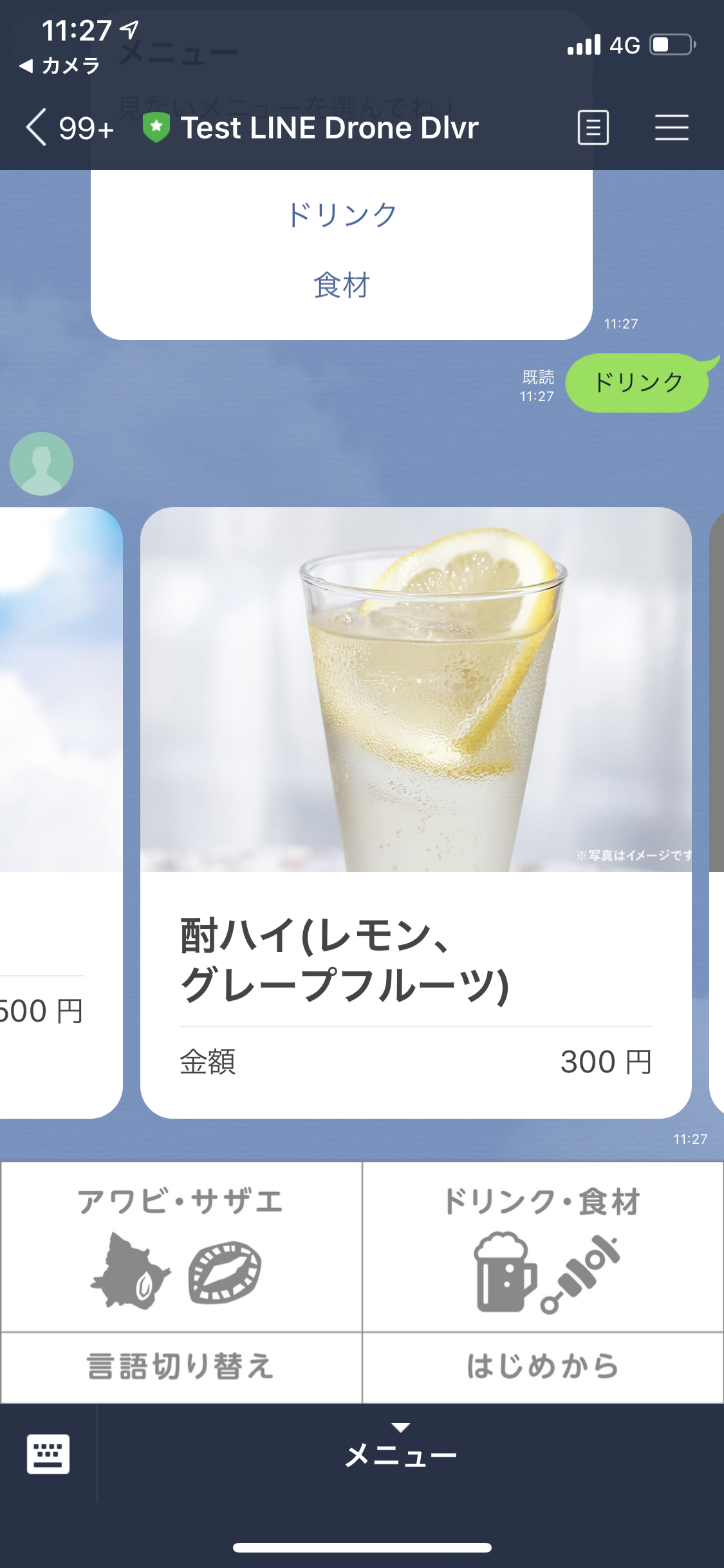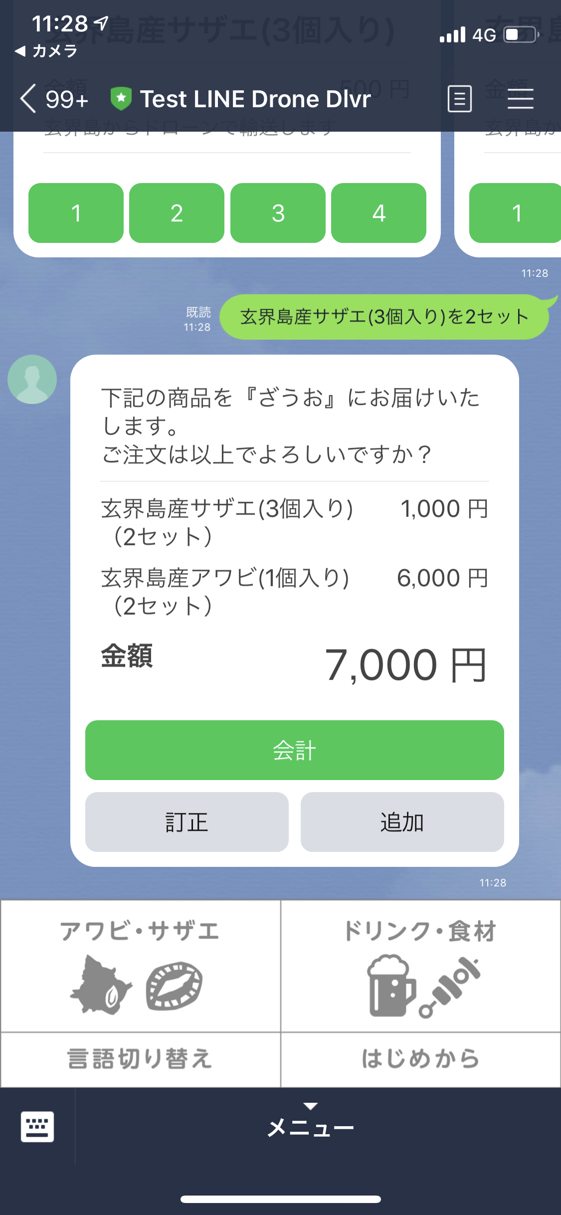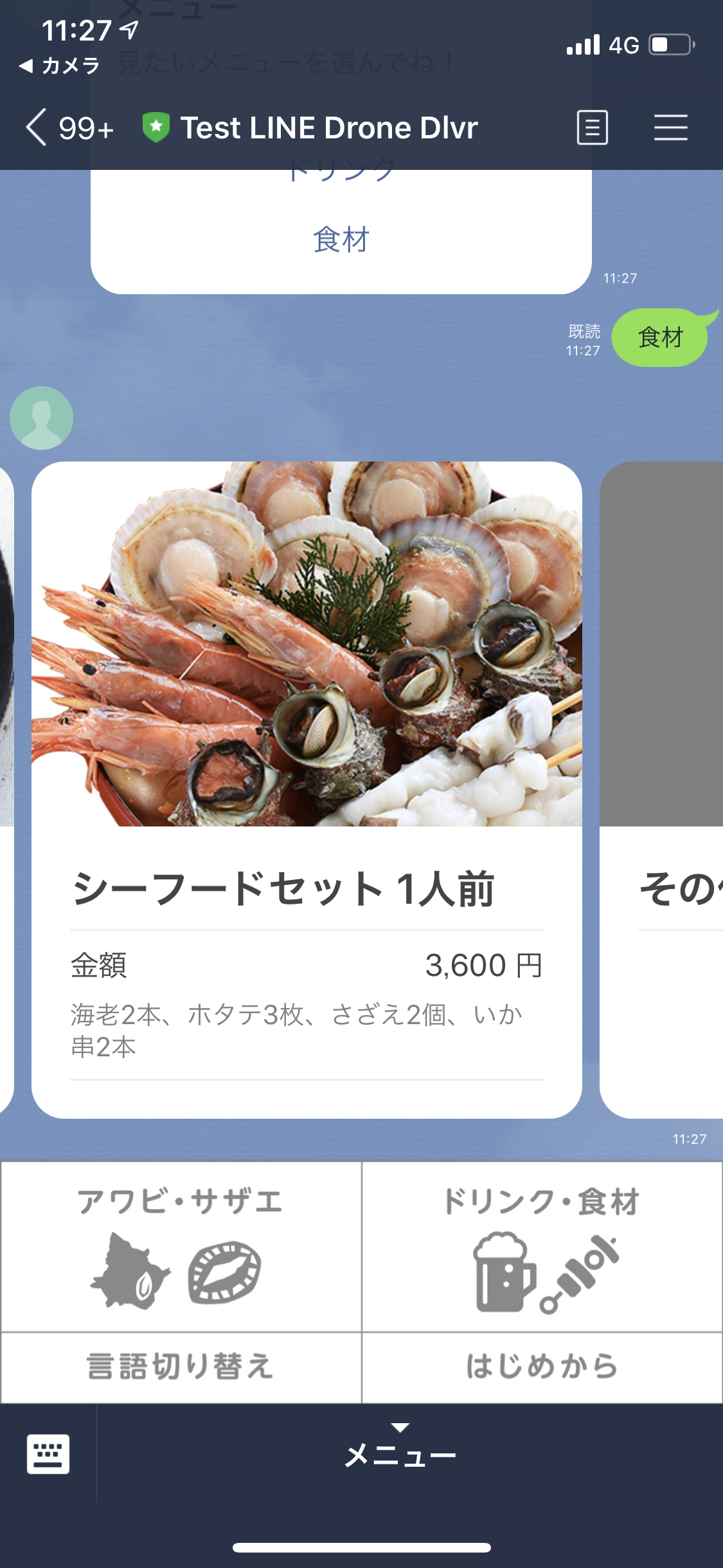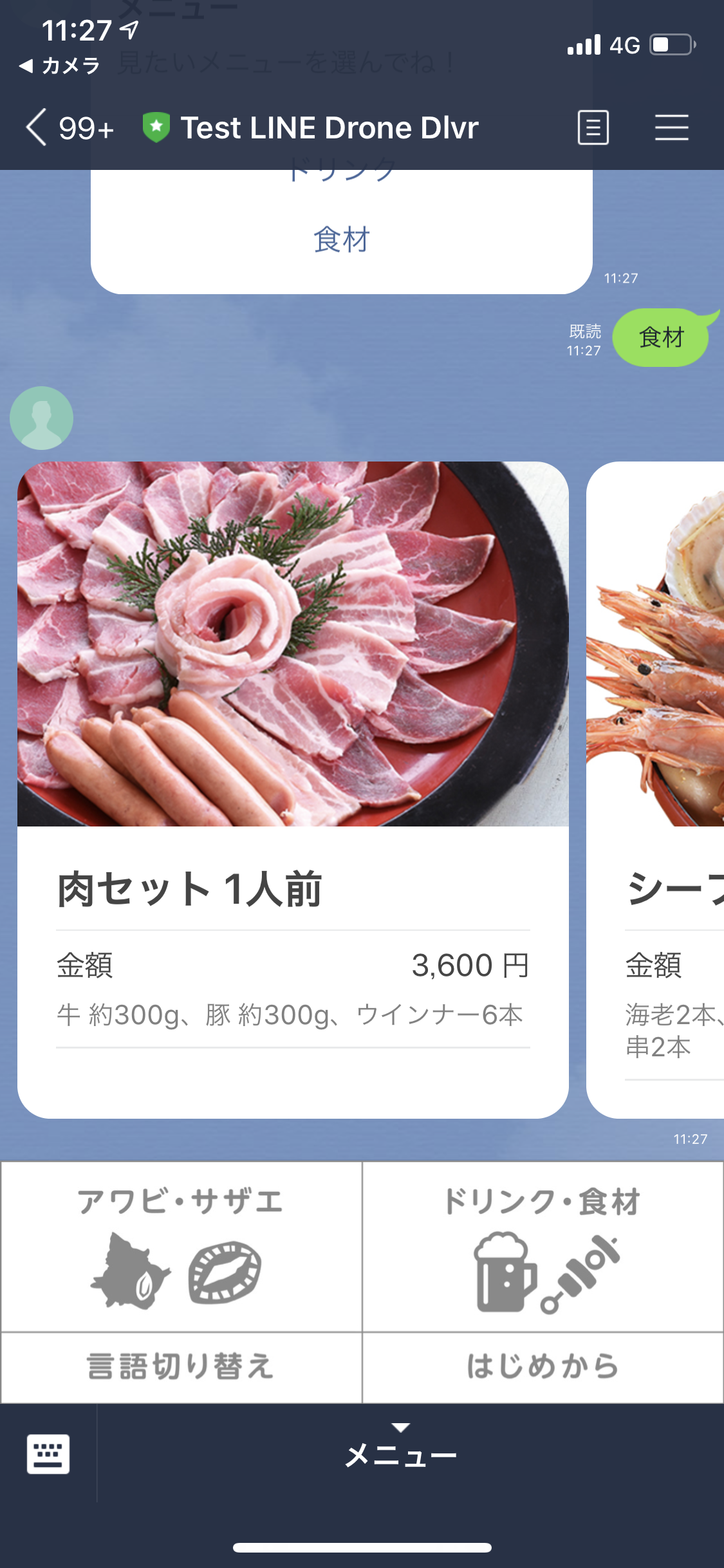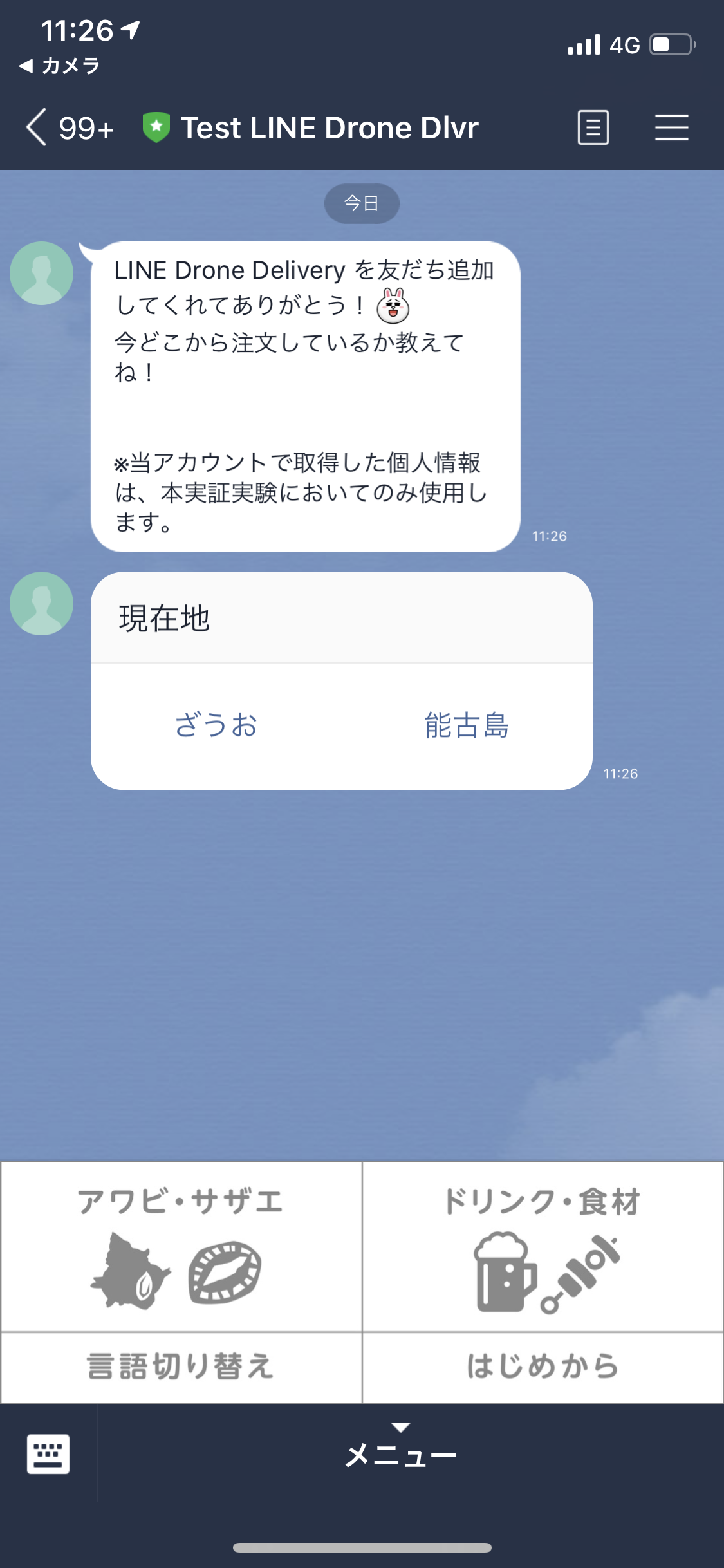 LINE Fukuokaでは、LINEアプリ内に実装したモバイルオーダー機能を提供。BBQ会場でスマートフォンから海産物をオーダーすることで、そのオーダーが玄界島に届き、海産物がドローンで運ばれてくるという流れだ。