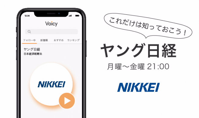 Voicyと日本経済新聞社は、音声メディアVoicyに専用チャンネル「ヤング日経」を8月12日に開設することを発表した。若年層向けに「これだけは知っておきたい」ニュースを月〜金曜の21時から配信する。