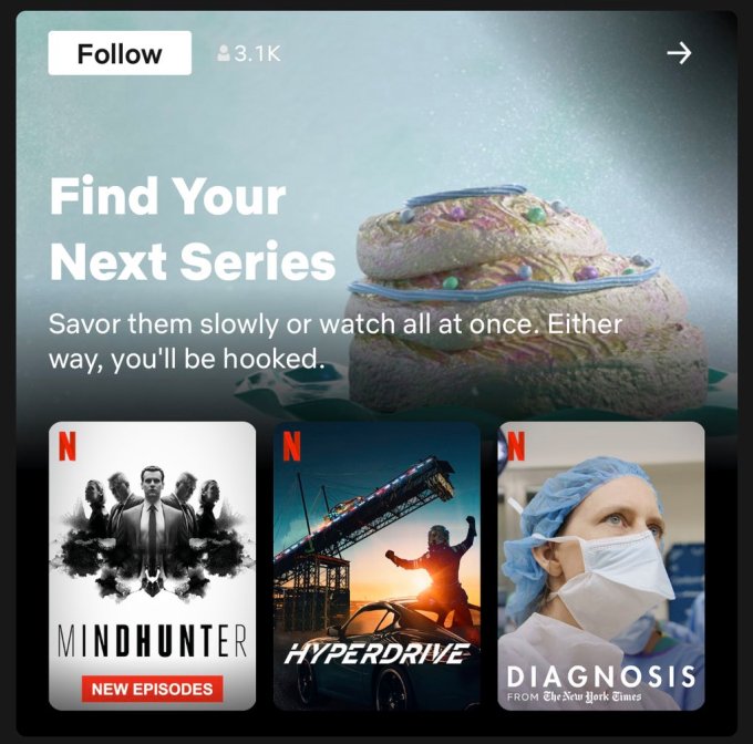 Netflixは、ユーザーが観たいであろうテレビ番組や映画を推薦する新しい方法としてCollections(コレクションズ)機能のテストを開始した。現在はiOSデバイスでテストが行われている。すでにNetflixでは、視聴履歴をもとにしたテーマ別の推薦を行っているが、コレクションズはテーマだけに縛られない。Netflixによると、社内のクリエイティブ部門に属する専門家によって作品がキュレーションされ、ジャンル、雰囲気、ストリー、キャラクターの特徴など、類似の要素をもとにコレクションズに分類されるという。