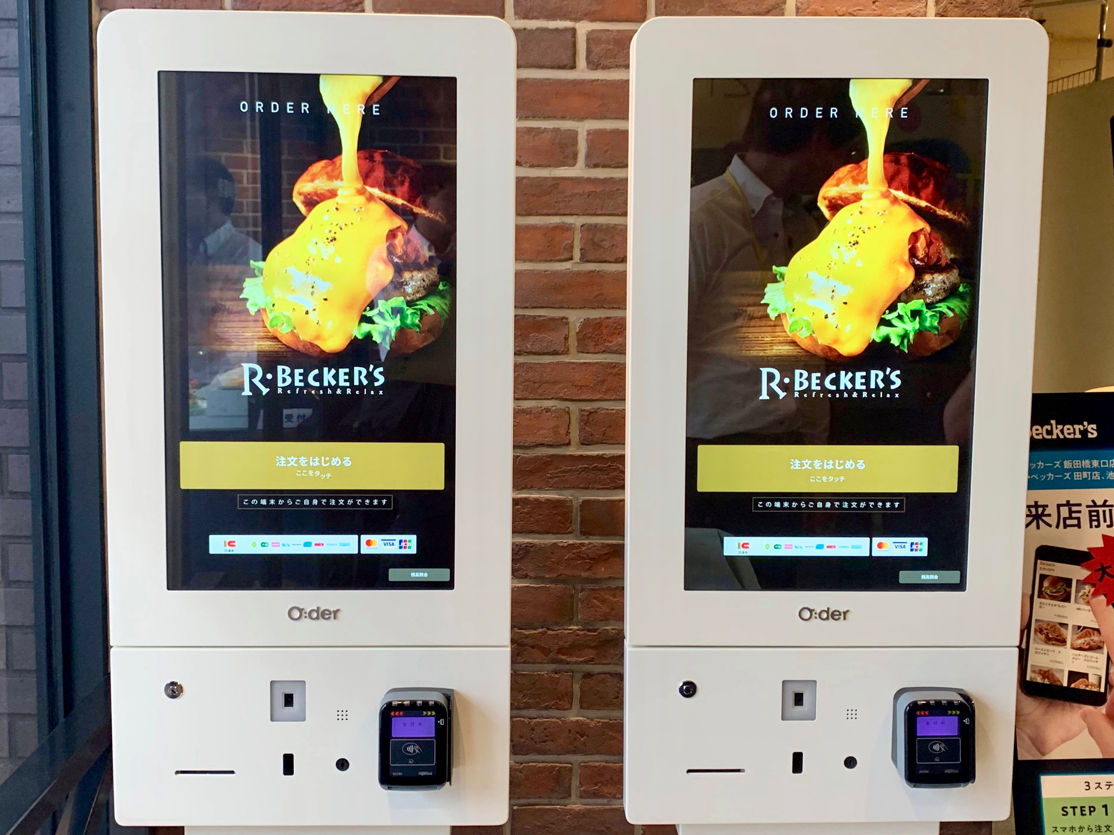 O:der Kioskは、JR東日本グループとShowcase Gig(ショーケース・ギグ)が共同開発した端末。クレジットカードや交通系電子マネーによる決済に対応している。この注文端末の導入は、店舗側には、注文受付や会計業務の軽減や店舗オペレーションの効率化、省人化などのメリットがある。R・ベッカーズ池袋東口店においては1人分のレジ人員を削減できる見込みだという。また、顧客にとっては、レジの待ち時間の軽減、加えて注文した商品の調理進捗をデジタルサイネージで確認可能、などの利点がある。