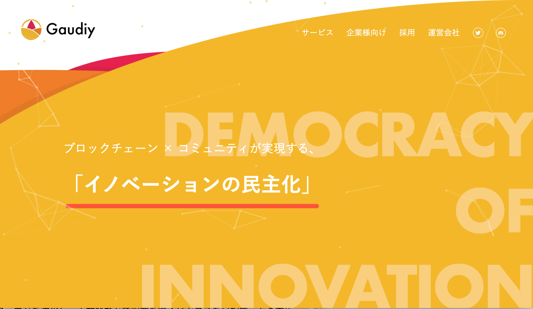 ブロックチェーン技術を活用して、企業のプロダクトやサービスのファンコミュニティマーケティングを支援するBaaS(Backend as a service)アプリケーション「Gaudiy」を開発。ブロックチェーンをベースにしDapps(分散型アプリケーション)コミニュティは、ユーザーロイヤリティーが非常に高く、ユーザーが社員のようにコミュニティを熱心にサポートする特徴があるとのこと。Gaudiyは、独自トークン、投げ銭、貢献値、チャンネル、企画などの機能を備えるトークンコミュニティープラットフォームで、現在8社でテスト中だ。同社はそのほかブロックチェーン技術の研究を、博報堂、毎日新聞、LIXIL、KONAMI、横浜ベースターズ、ブリヂストン、三菱電機、そのほか海外のブロックチェーン企業、大学機関などと研究を進めている。