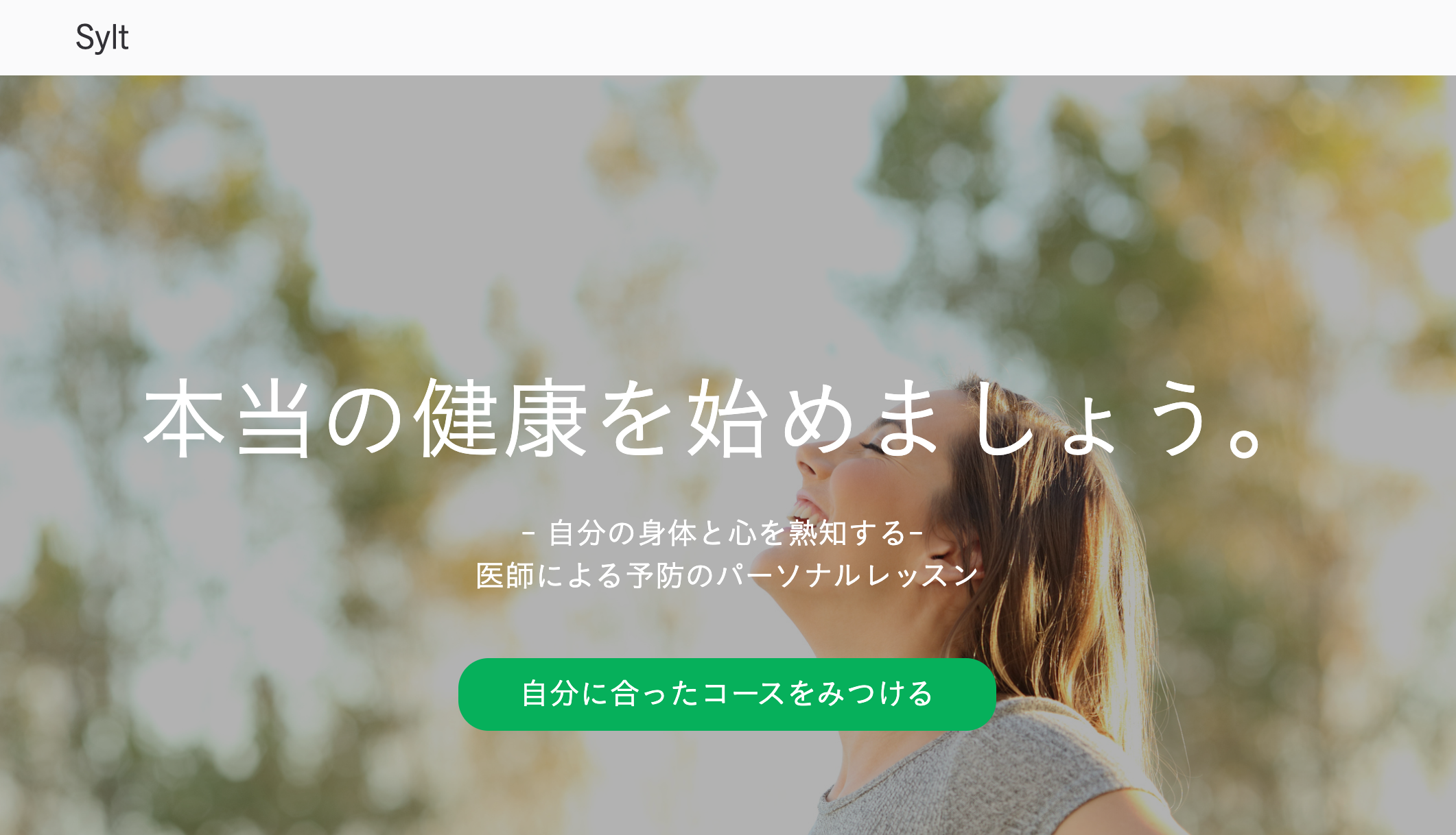 パーソナルドクターを軸としたウェルネス事業を展開。身体が不調を感じる前に予防することを目的とした、医師によるパーソナルトレーニング「Sylt」を提供している。Syltでは、マスター、目的別、スポットの3コースを用意。マスターコースでは、自分の身体・心について体系的に理解を深め、将来の病気に備えるためのヘルスリテラシーを得ることができる。目的別コースでは、ダイエット、人間ドック、遺伝子検査などを深く理解しながらトレーニングを受けられる。スポットコースでは、ガンや糖尿病、子供の健康など、自分が関心のある領域ついて学べる。
