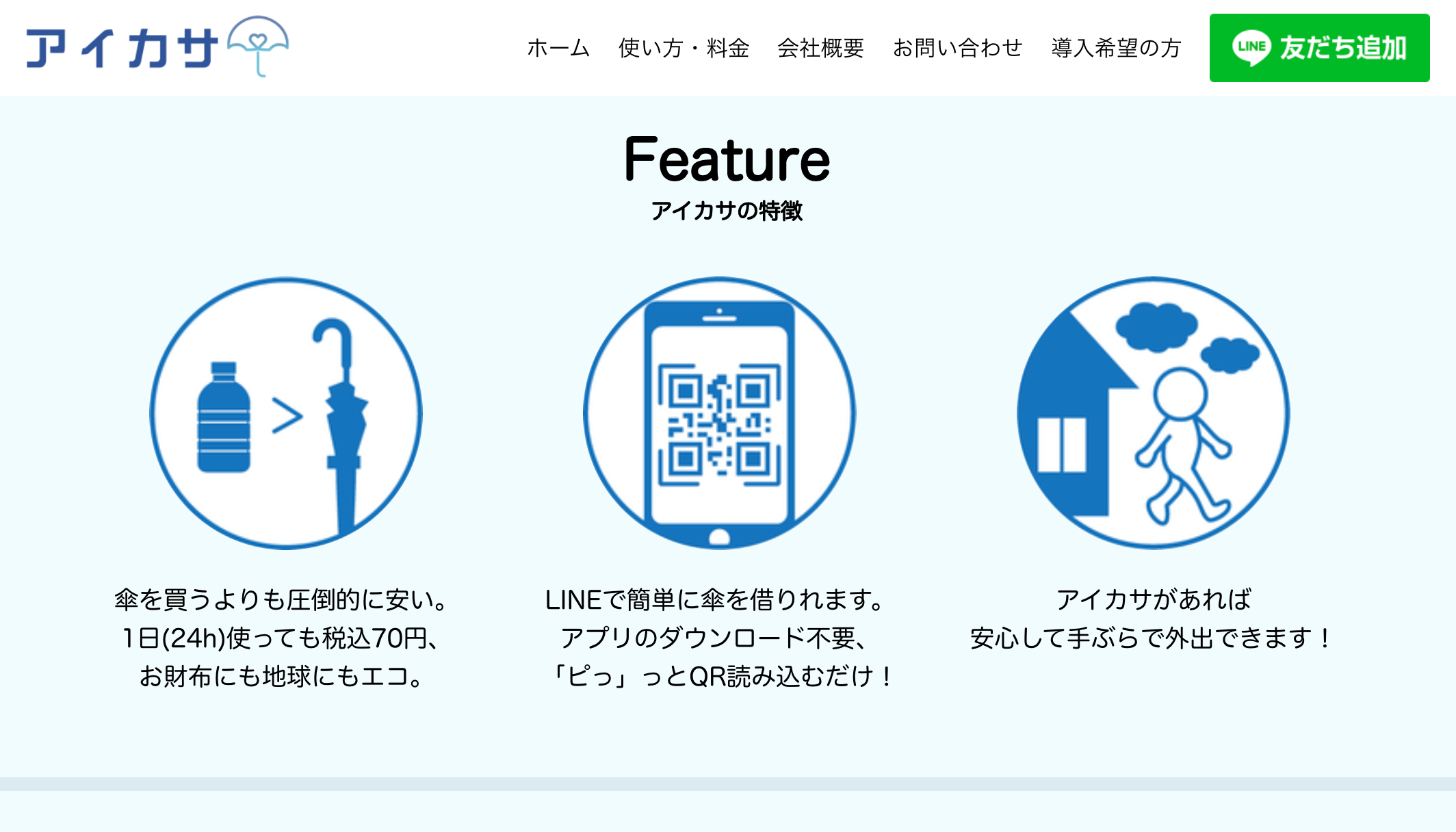 1日70円で傘を借りられるサービス「アイカサ」を展開。専用アプリは不要で、LINE上でアイカサのアカウントを友だちに追加することですぐに使えるのが特徴だ。アイカサスポットに設置されている施錠状態の傘に張られているQRコードをスマホで読み取ることで解錠・決済が可能。1日ごとに70円が加算されていくが、6日以降からは1カ月間は420円。ゲリラ豪雨など想定外の雨であっても、コンビニで傘を購入するより安価に利用できる。傘の返却は最寄りのアイカサスポットに返却すればいい。決済方法は、クレジットカードのほかLINE Payを選べる。今後は全国の鉄道事業者と交渉を進め、2022年には773駅13万本を目指す。現在、280円の月額サービスも試験導入しており、最終的には家の傘のリプレースも狙う意気込みだ。利用頻度が高いユーザーの行動をスコア化して、クーポンなどの特典配布も検討しているとのこと。
