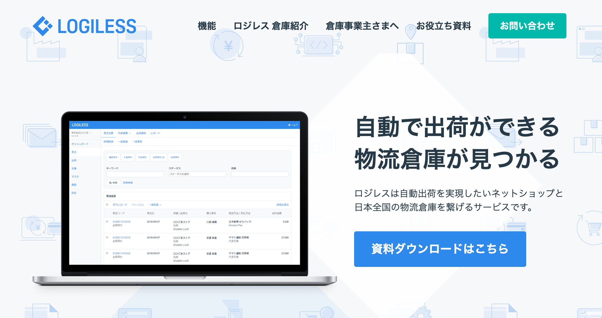 受注管理システム(OMS)や倉庫管理システム(WMS)など、EC事業で必須の倉庫のバックヤード業務を効率化するサービスを提供。同社が解決するのはEC事業者の経営課題。商品受注や発送、煩雑でコストもかかる在庫管理などのバックヤード業務をロジレスにアウトソージングすることで、人件費や輸送費などを圧縮できる。ロジレスのシステムでは、受注管理、在庫管理、出荷作業などの一連の業務を1つのシステムで管理可能になるのが特徴だ。商品の自動出荷はもちろん、商材や配送先、配送方法に応じて最適な場所から出荷する「複数拠点出荷」も可能になる。現在、30社以上と倉庫業務で提携しており、今後も提携数を増やしていく計画とのこと。将来的にはネットショップだけでなく、POS連携などで卸小売業の商品配送などにもサービスを広げていく。