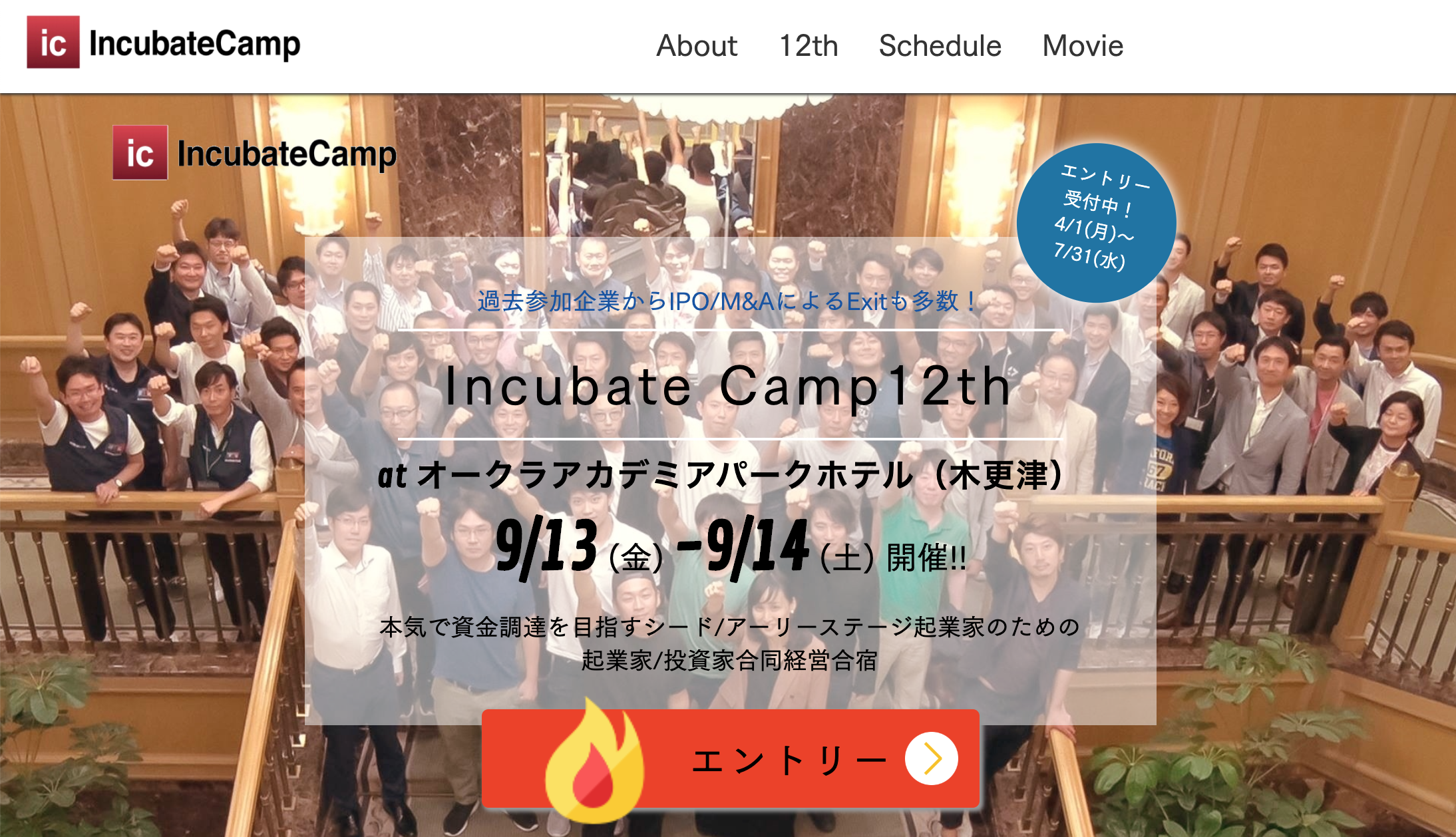独立系ベンチャーキャピタル(VC)のインキュベイトファンドは9月13日、14日の2日間、通算12回目となるIncubate Campを開催した。Incubate Campは、シード/アーリーステージ起業家のための1泊2日の合同経営合宿。国内の著名な投資家やVCからのメンタリングが受けられるほか、数千万〜億円単位の投資の機会もある。今回は16社のスタートアップ企業が参加し、それぞれの事業内容や戦略について語った。