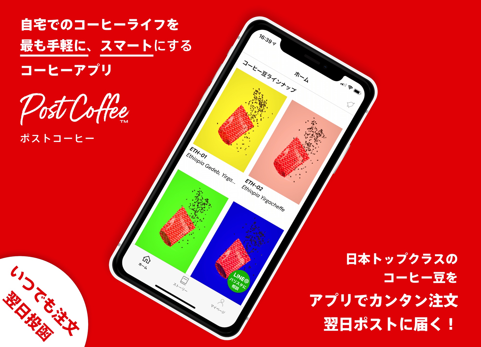 現在はエチオピアやケニア、コロンビアなど世界各国から厳選した10種類のシングルオリジンにオリジナルブレンドを加えた全11種のコーヒー豆を用意。これをアプリ上から手軽に注文できる形で提供する。